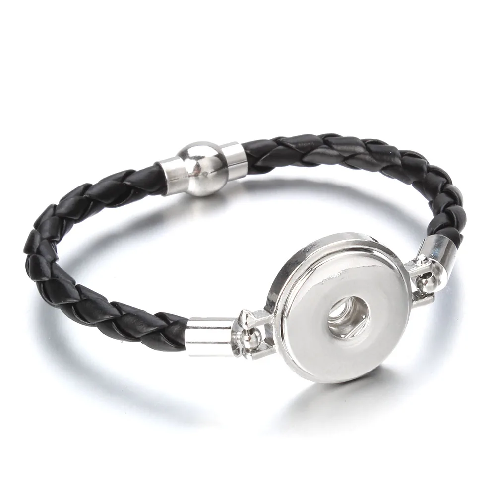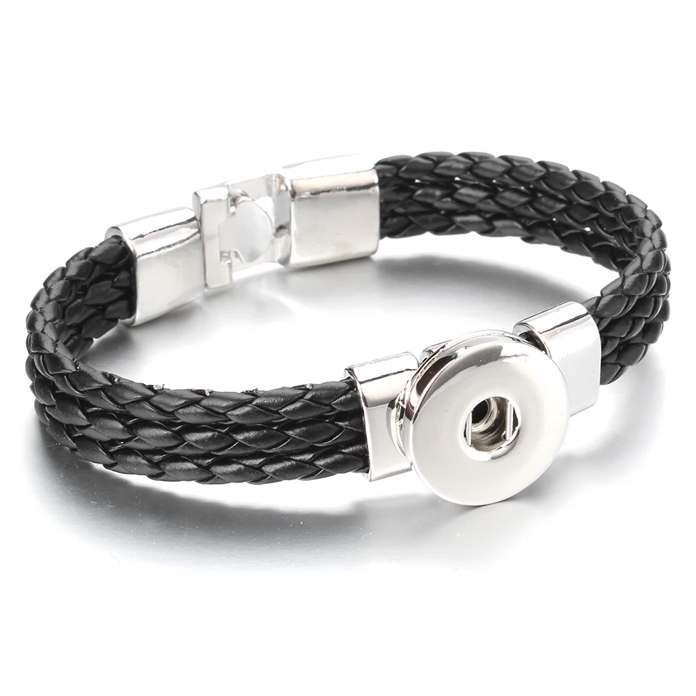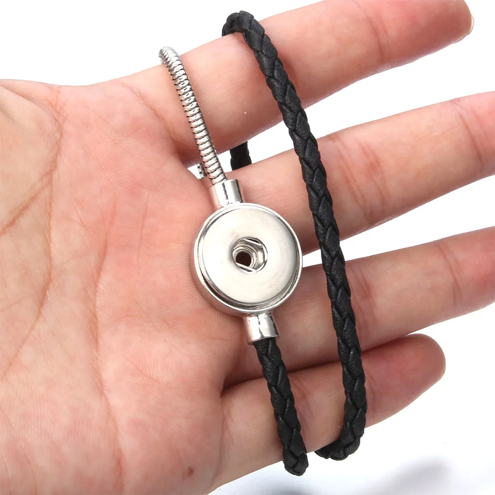 Плетеный браслет, 1 шт., 18 мм, застежка-кнопка, мужской, женский Плетеный кожаный шнур, унисекс, сделай сам, застежка, ювелирные изделия