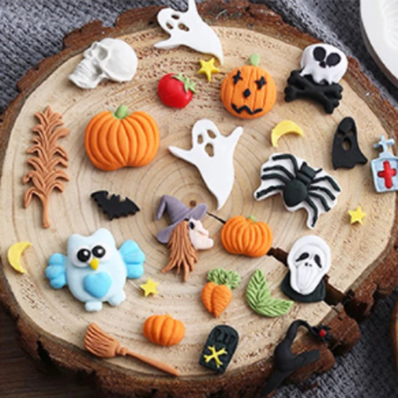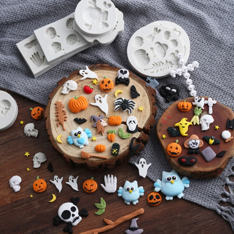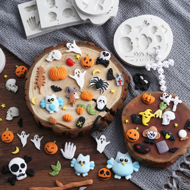 Силиконовая форма для выпечки, форма для изготовления черепа, на тему Хэллоуина, с тыквой, призраком, формы для сахара