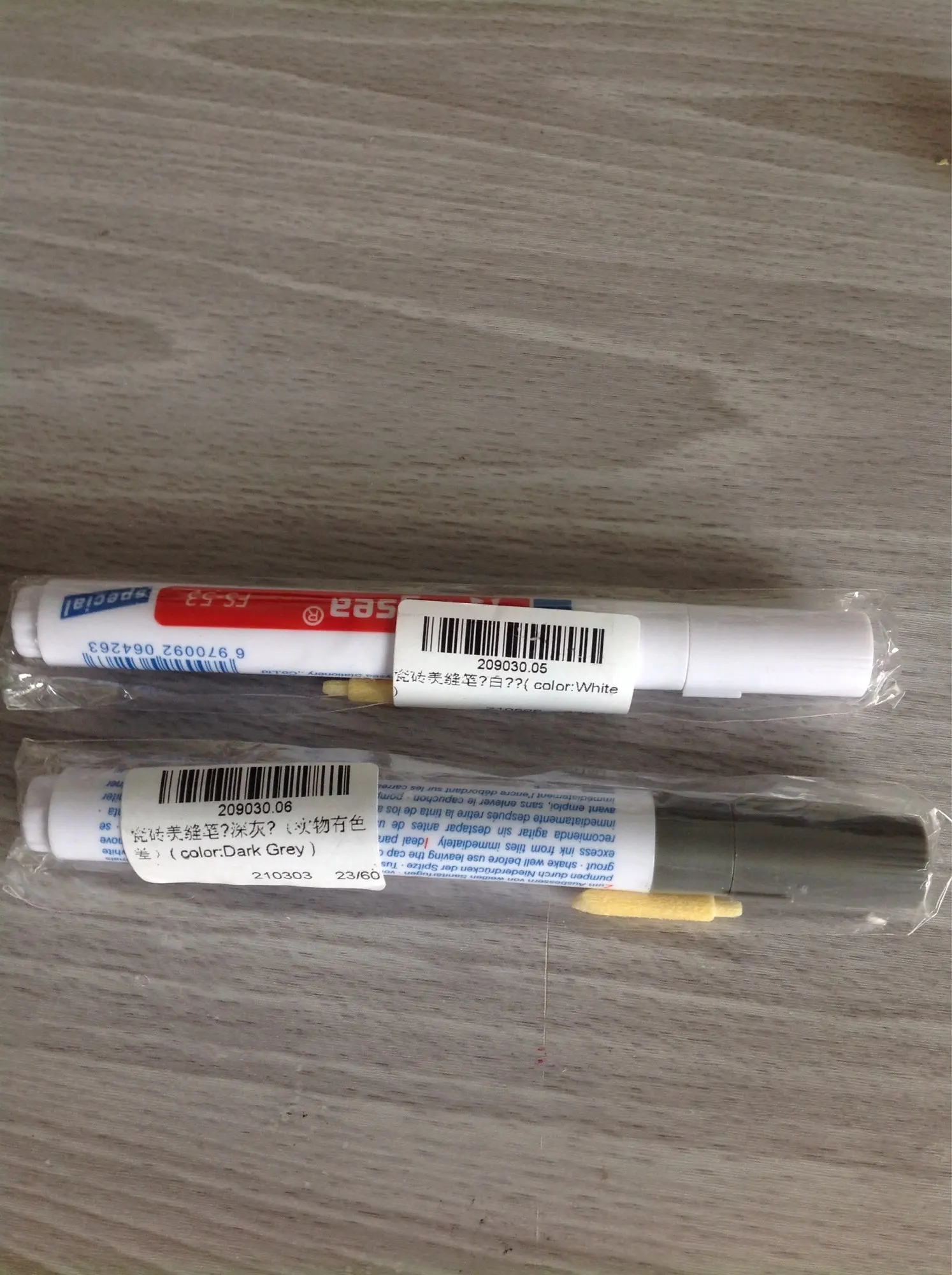 Excellent grout whitening pen, comes with two mins one is thicker than the other, the thin nib is ideal for the grout in my bathroom as the spacing between tiles is narrow, this is the second time I've ordered from this seller as I didn't think one pen would be enough to complete the entire bathroom, it applies well and works exactly as described, order dispatched and received quickly, well packaged, seller recommend, thank you