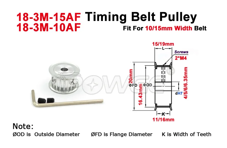 Зубчатый шкив 3 м POWGE с 18 зубьями, отверстие 4566.357 мм подходит для W = 1015 мм 3M ремень 18 T 18 зубьев HTD3M синхронный ременной шкив 18-3M AF