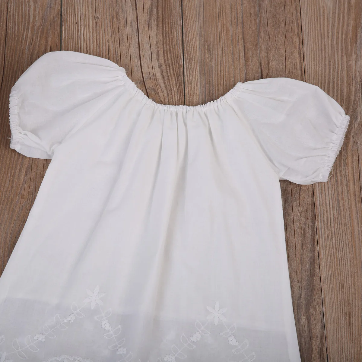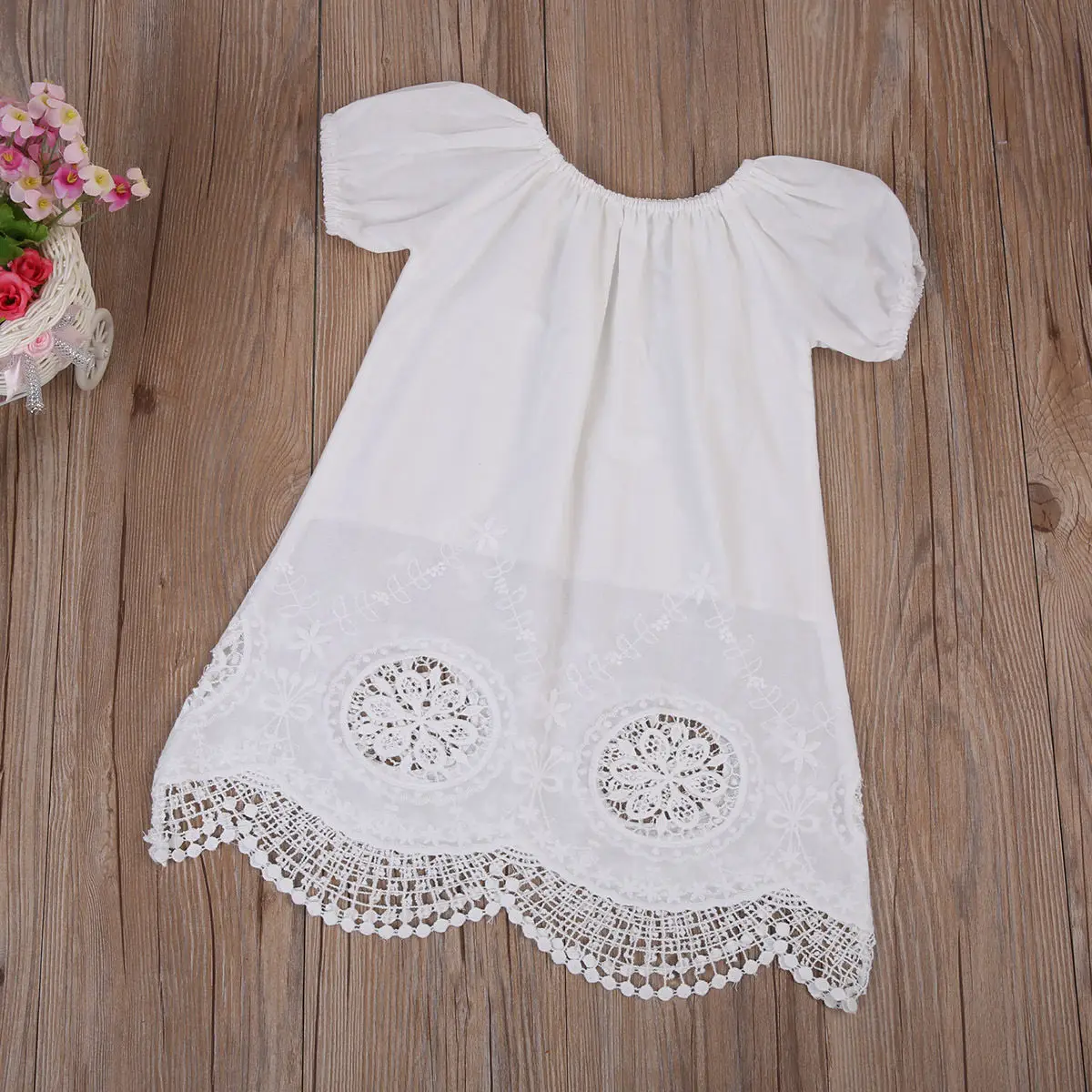 Детское платье с короткими рукавами для девочек, белый кружевной хлопковый сарафан, вечерние пляжные праздничные платья для девочек на свадьбу, туника для маленьких девочек