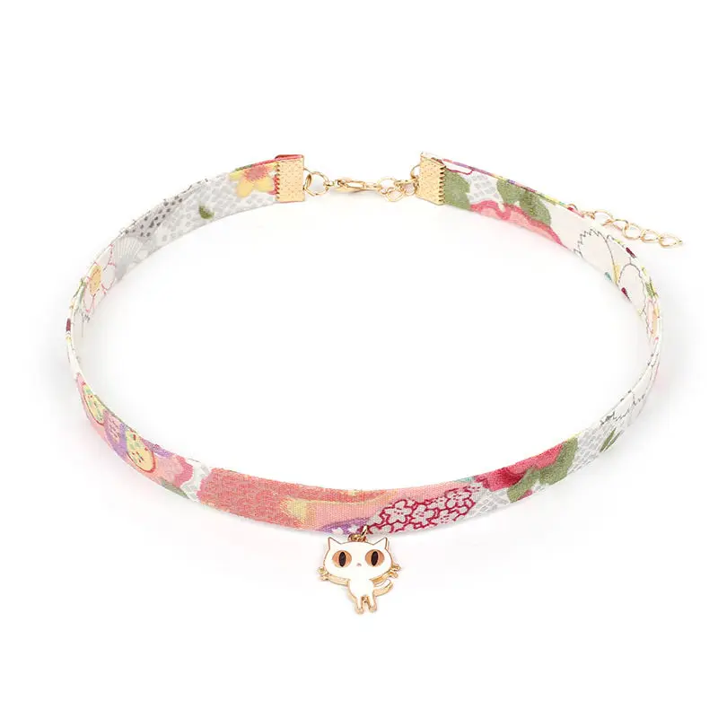 Ожерелье-чокер в японском стиле 1 шт., классическое эмалированное ожерелье из ткани в виде сакуры, цветка, кролика, лисы, кошки, Журавля, подарочное ювелирное изделие длиной 30 см