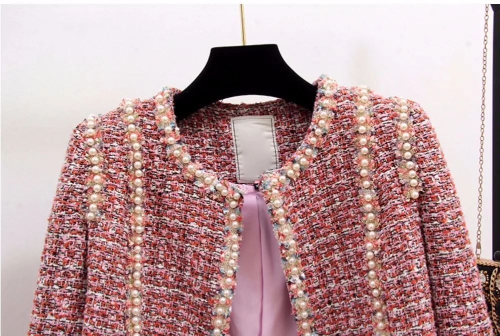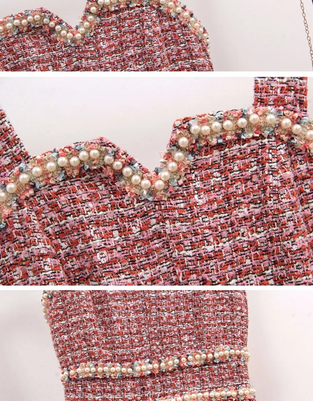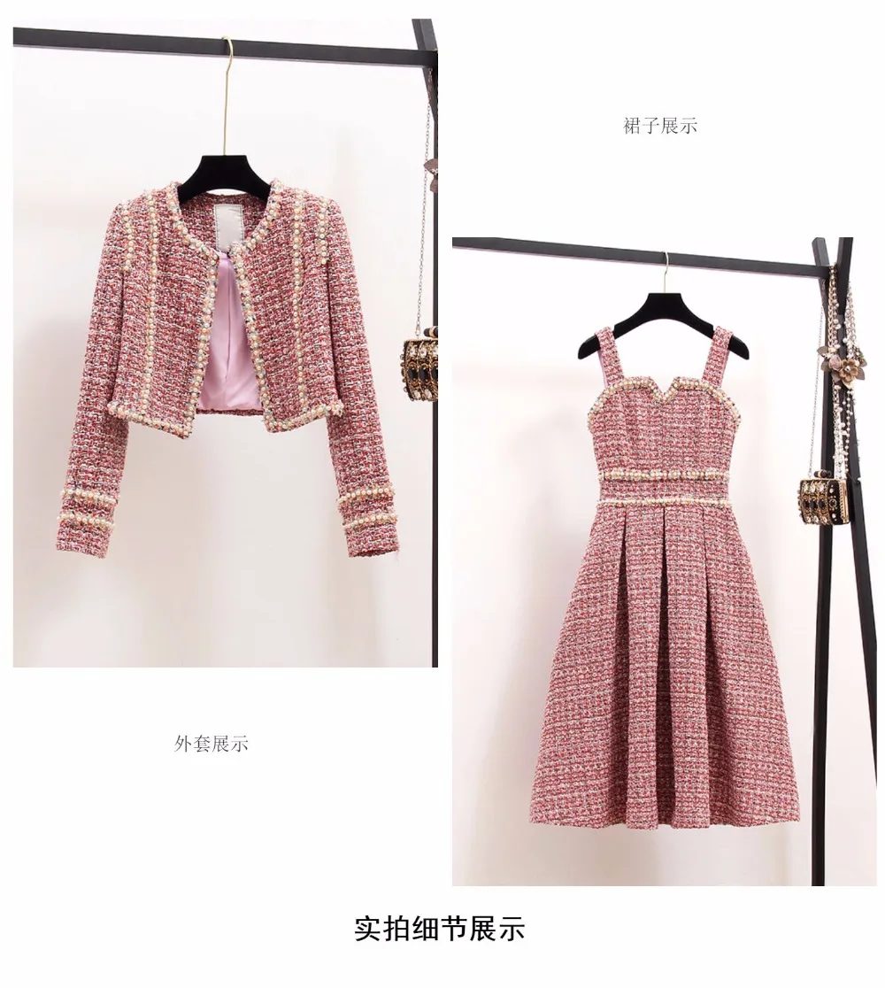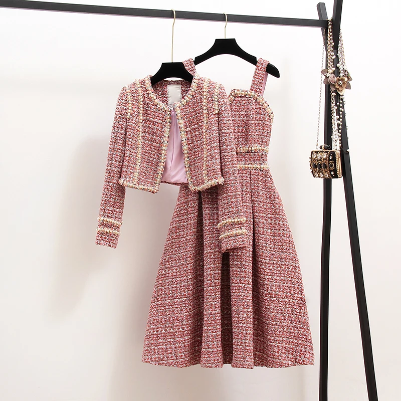 Женский твидовый комплект из 2 предметов, короткий пиджак и платье-жилет, расшитый бисером, элегантные вечерние платья, осень 2021