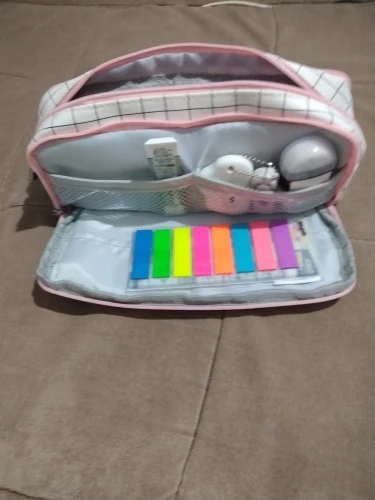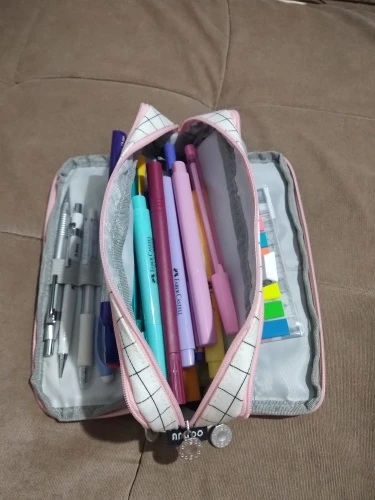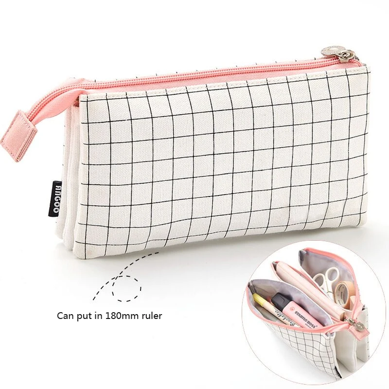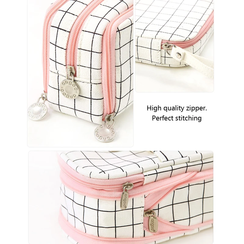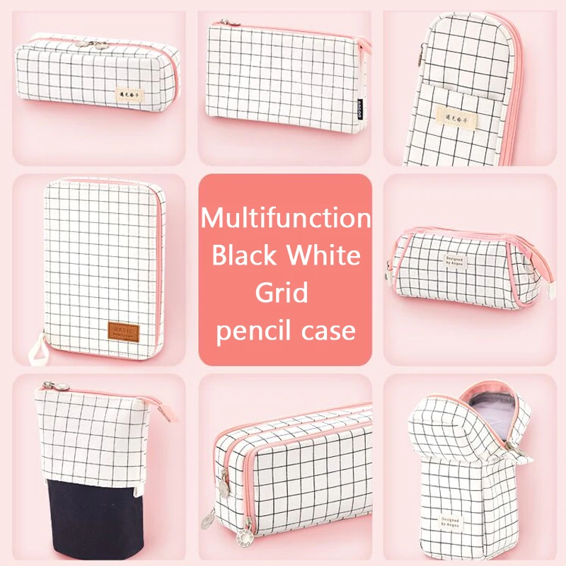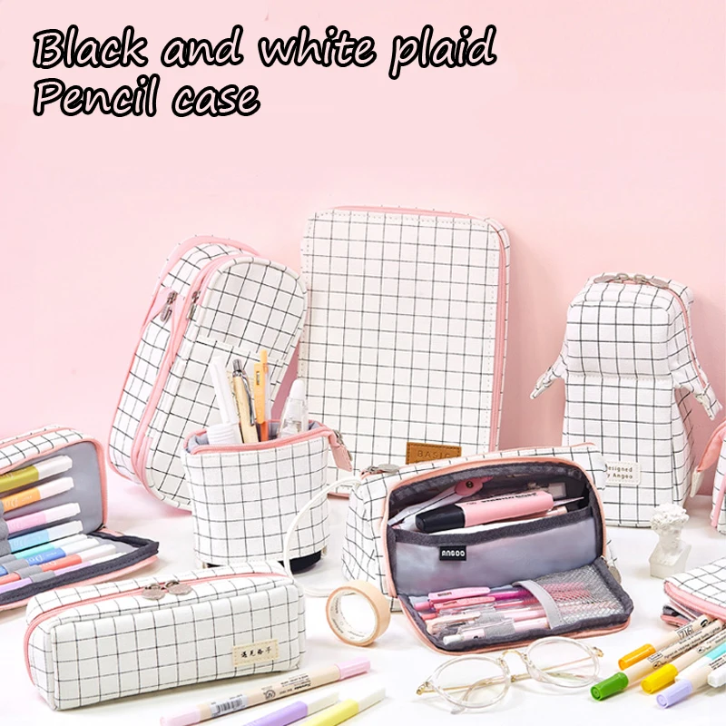 Большой корейский чехол для карандашей, милый многофункциональный чехол в черно-белую клетку на молнии, школьные принадлежности