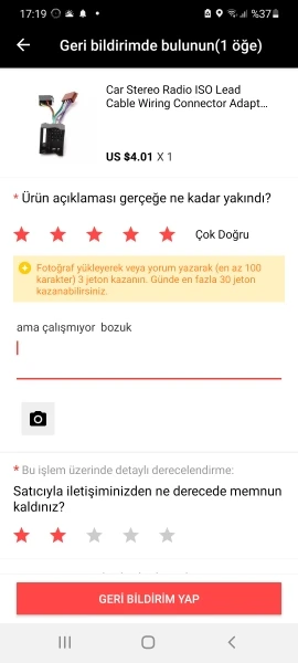 <2en> Доставка очень быстрая, спасибо, продукт здоровый и хороший, доставка 15 дней, купил 16tl налог, который я заплатил