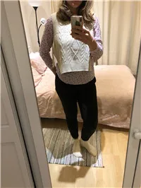 Доставка быстрая. Жилетка не очень большая. На девушку 170рост 58кг еще подходит. На более крупных будет смотреться уже совсем не оверсайзно.