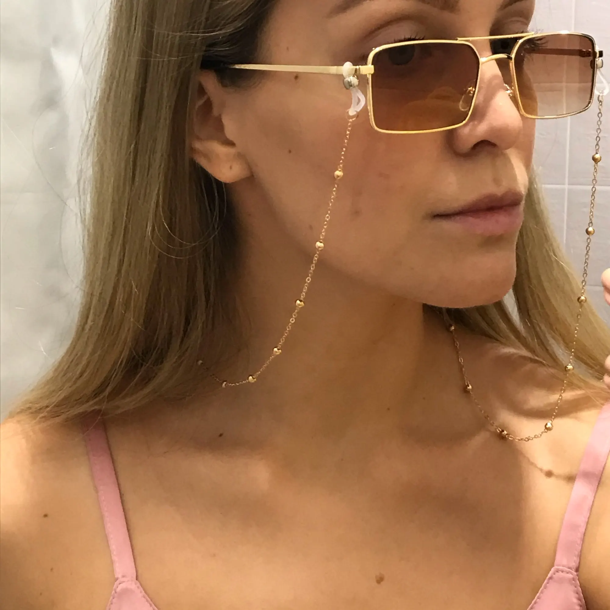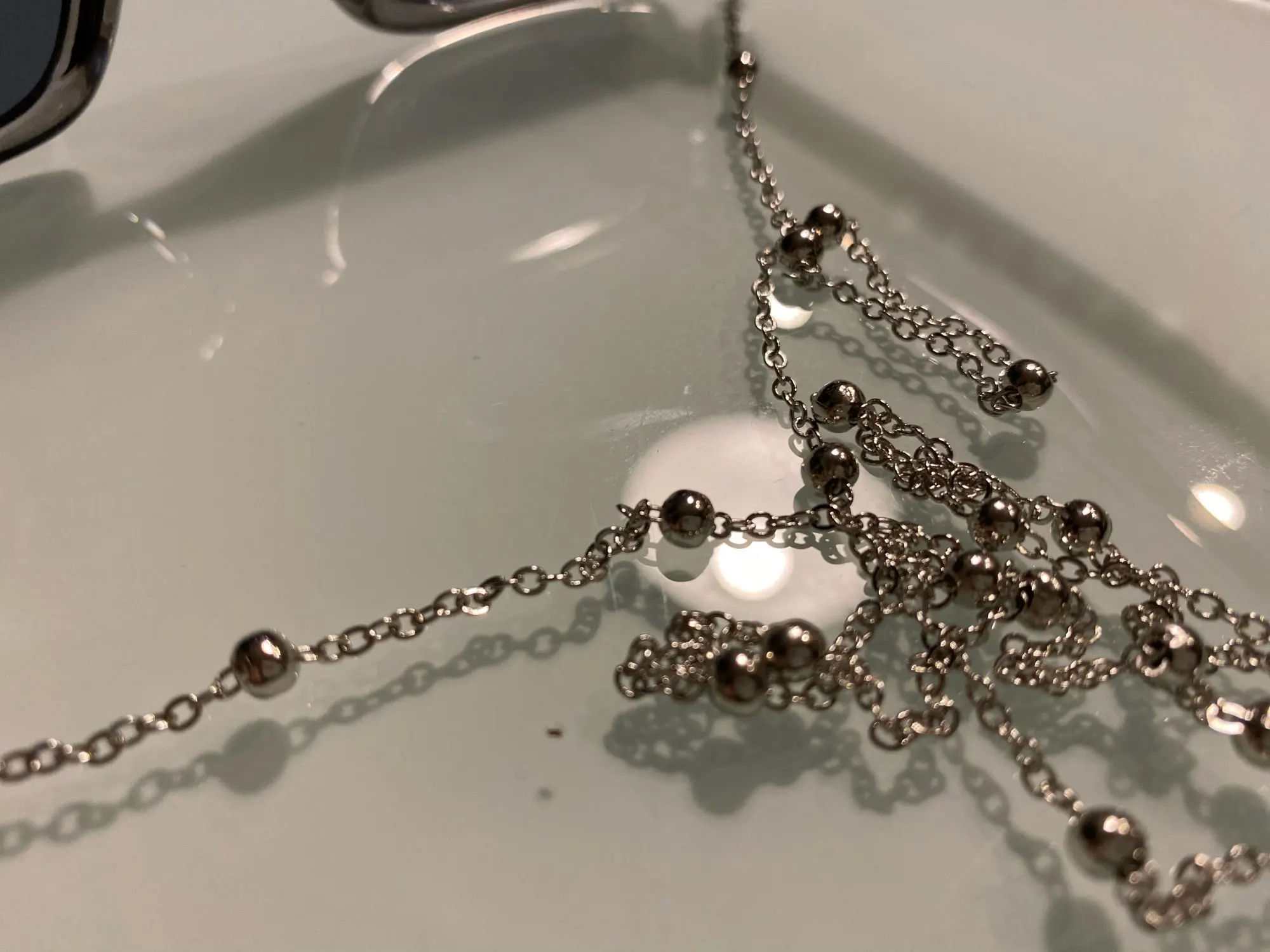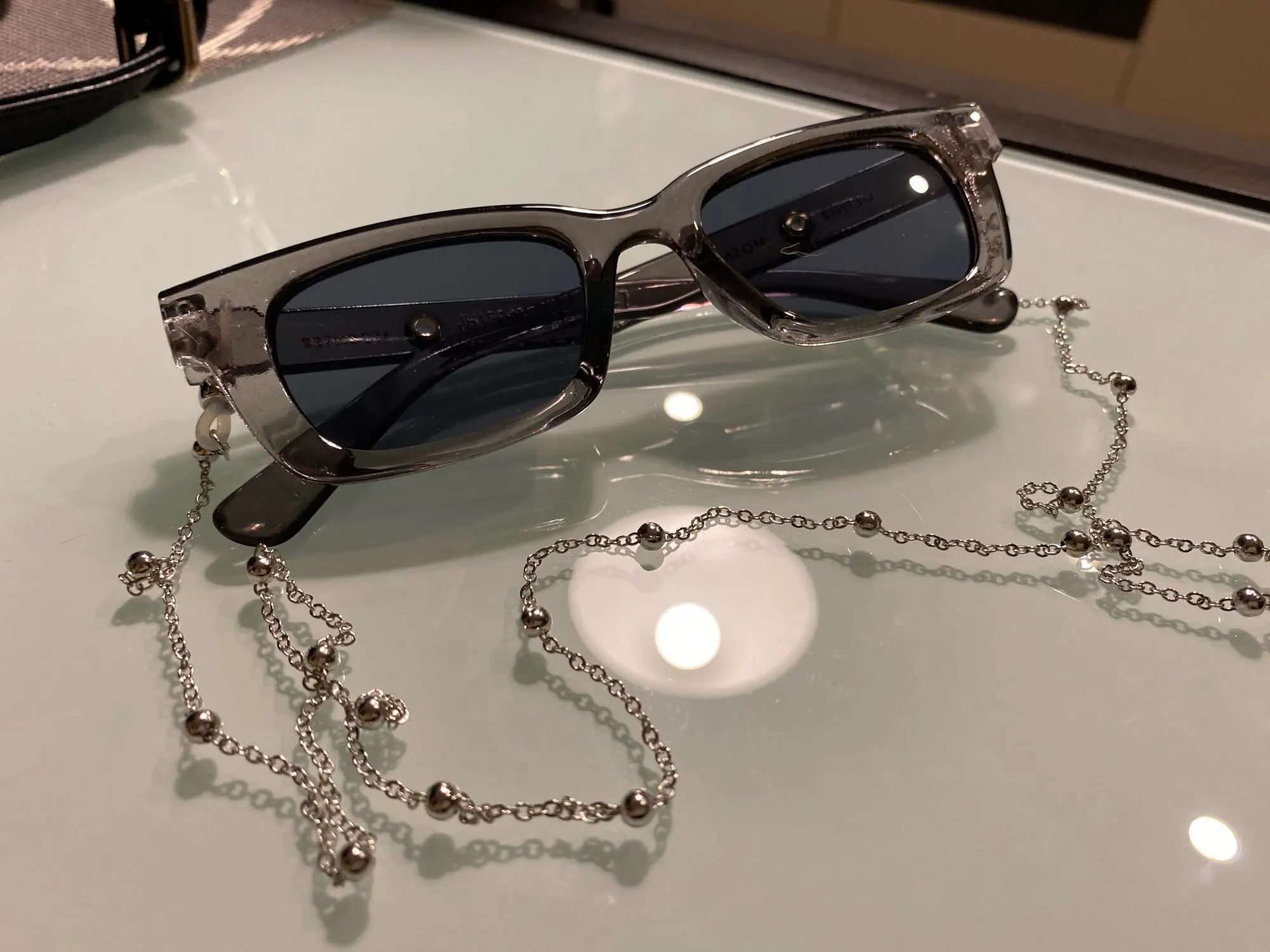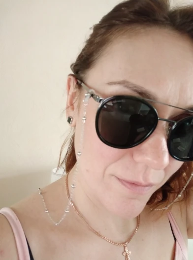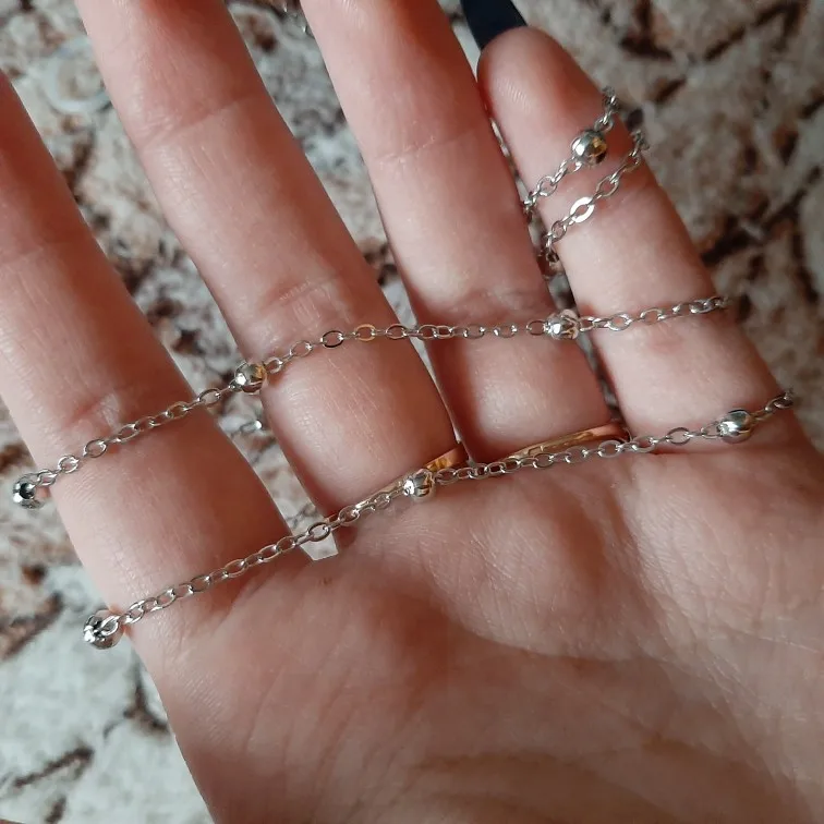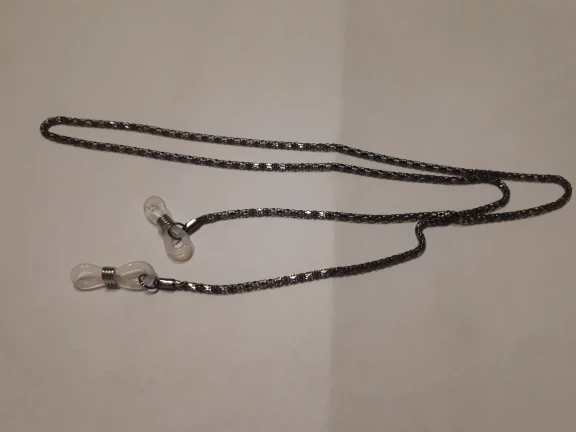 Очень классная цепочка для очков! Смотрится стильно, сверкает, как серебро! Качественная и аккуратная.