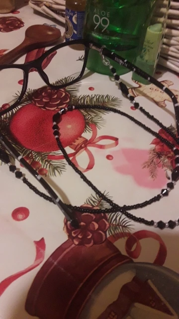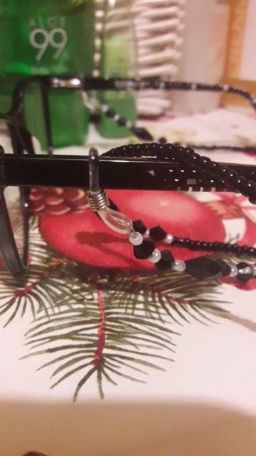 Оплатила 7.12, доставлена 04.01 в сборной посылке. Замечательная цепочка. Чёрный цвет смотрится строго, элегантно. Наконечник - только силиконовое колечко, без карабина. Красивый аксессуар для очков. Спасибо продавцу! Роста продаж!