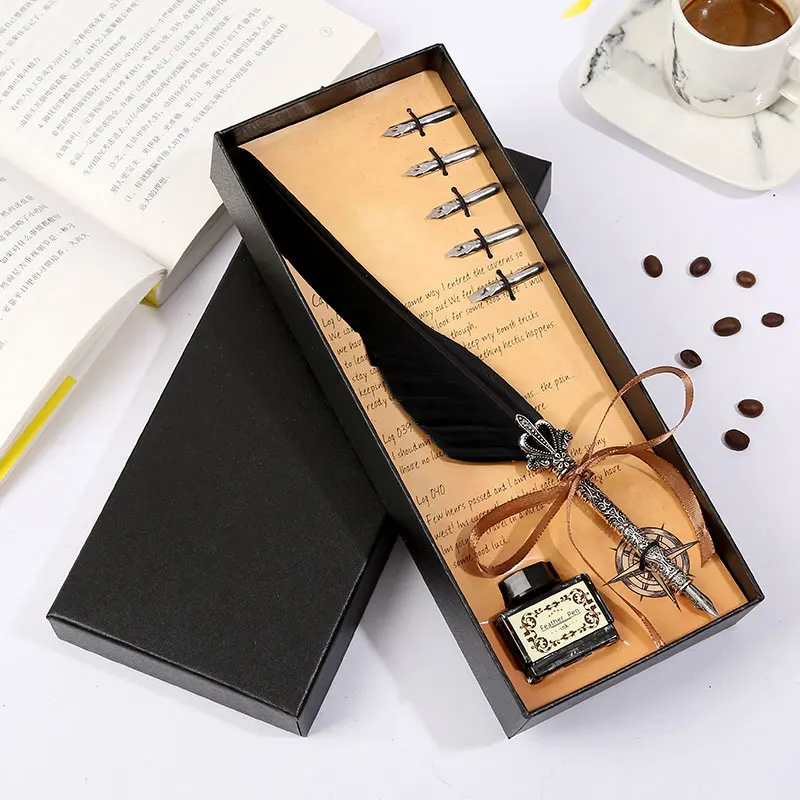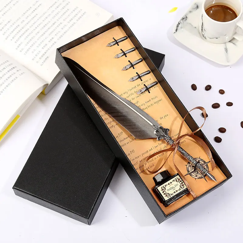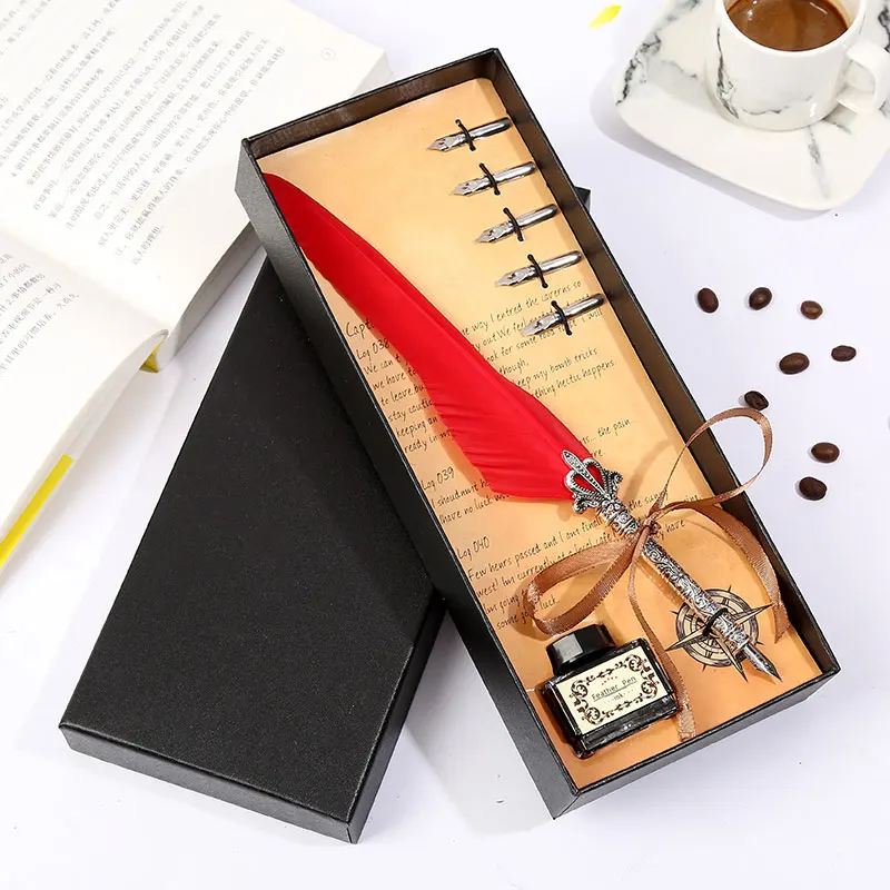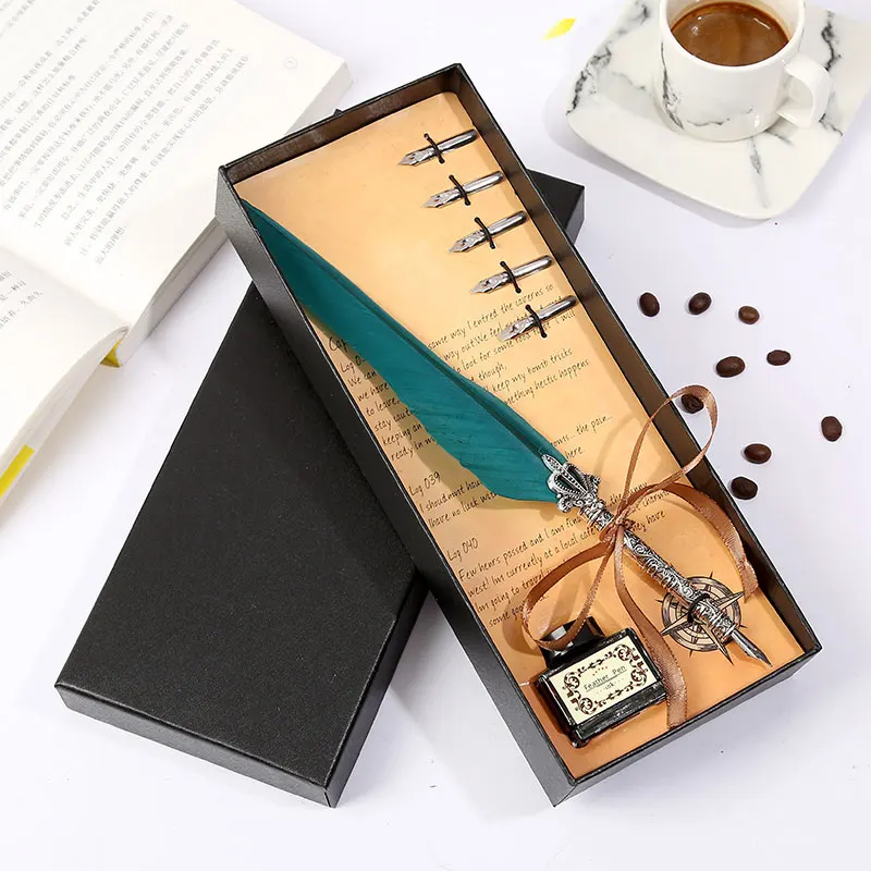 Ретро винтажная каллиграфическая перо ручка для письма Канцтовары Подарочная коробка свадебный подарок на день рождения Особенность: 1. Простой в использовании, высококачественный наконечник, изготовлен из нержавеющей стали для гладкого письма. 2. Медный держатель для ручек с винтажной текстурой, простой, Джентльменский, гладкий корпус, приятный на ощупь. 3. Упаковка подарочной коробки, подходит для отправки пар, отправки пожилых людей, отправки учителей. Характеристики изделия: Цвет: десять цветов на выбор Размер игрушки: перо Размер ручки: 25-26 см/9.8in-10.2in размер подарочной коробки: 27,5 cm × 11cm × 4cm / 10.83in × 4.33in × 1.5in полный подарок Вес: 250g Материал изделия: держатель ручки из сплава + наконечник из нержавеющей стали Комплектация упаковки: коронка с длинными волосами + чернила + черная коробка Примечания: 1. Наконечник пера-1,0 мм. Каждое перо укомплектовано пятью моделями перьев. № 1 3 мм, № 2 2,5 мм, № 3 2 мм, № 4 1,5 мм, № 5 1 мм,