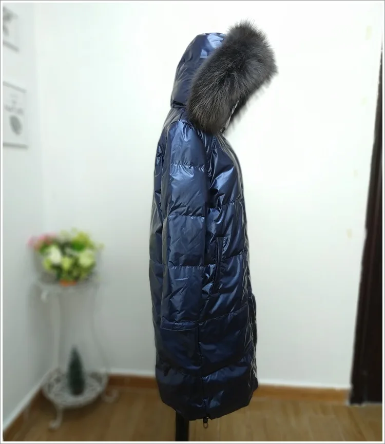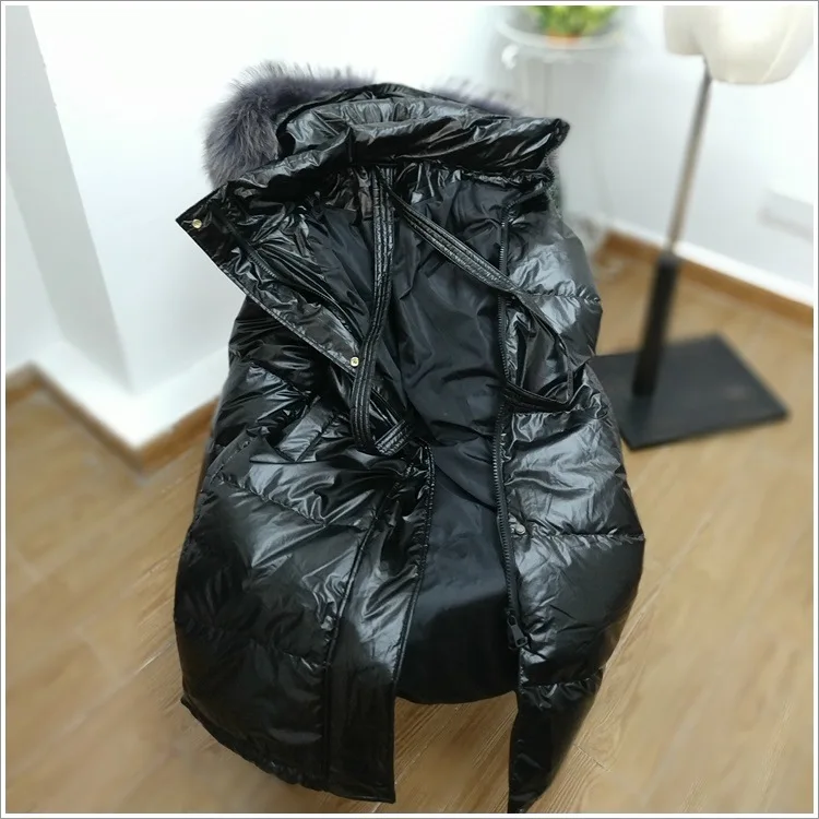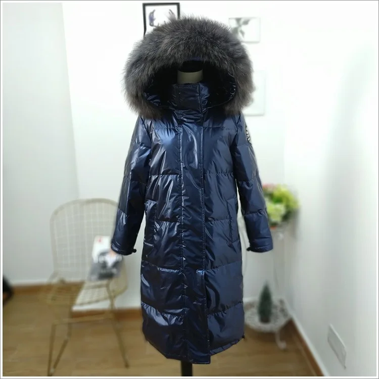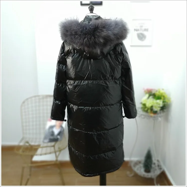 Женский пуховик Schinteon с воротником из натурального меха на капюшоне свободная зимняя теплая толстая верхняя одежда длинное пальто на белом утином пуху большого размера