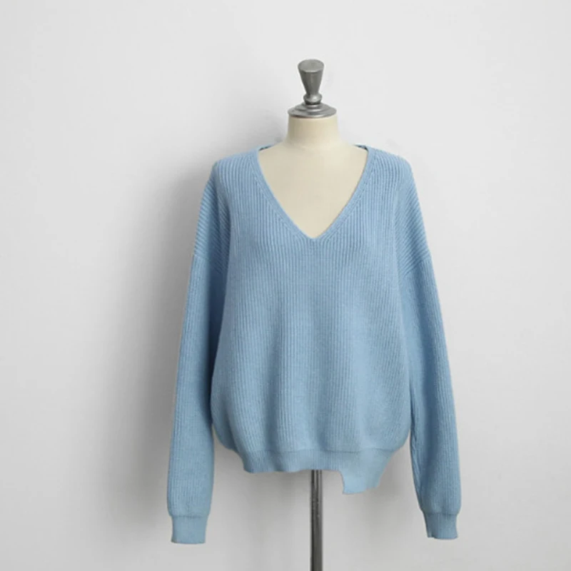 Женский вязаный пуловер с v-образным вырезом, однотонный Свободный ...