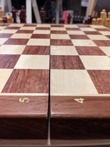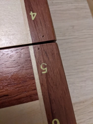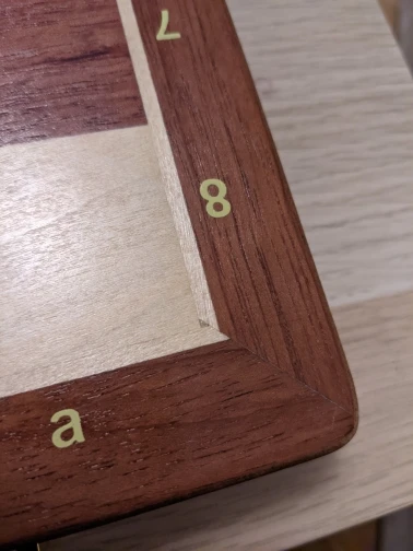 For over 50 USD I expected some more attention to details. Quality is not terrible, but I have few issues, which I wouldn't have if the chess set was 20 USD.: - board rocks on the table - they smell of varnish quite a lot - two halves of the board are not aligned - pieces fall from their place, when opening the set - there are some very small dents, scratches and paint stains on the board. - pieces are very lightweight, one of dark towers has a big knot on it, knight eyes are cut different on each piece - letters are not aligned in the centre of a field, but you can see it in the sellers pictures - frame around the fields is crooked Bought it for a gift, and I will have to buy another set probably. I wonder where all these french five star reviews came from. I know it's cherry picking and for some of you it may all be ok but it's definitely not "top grade" as in the title.