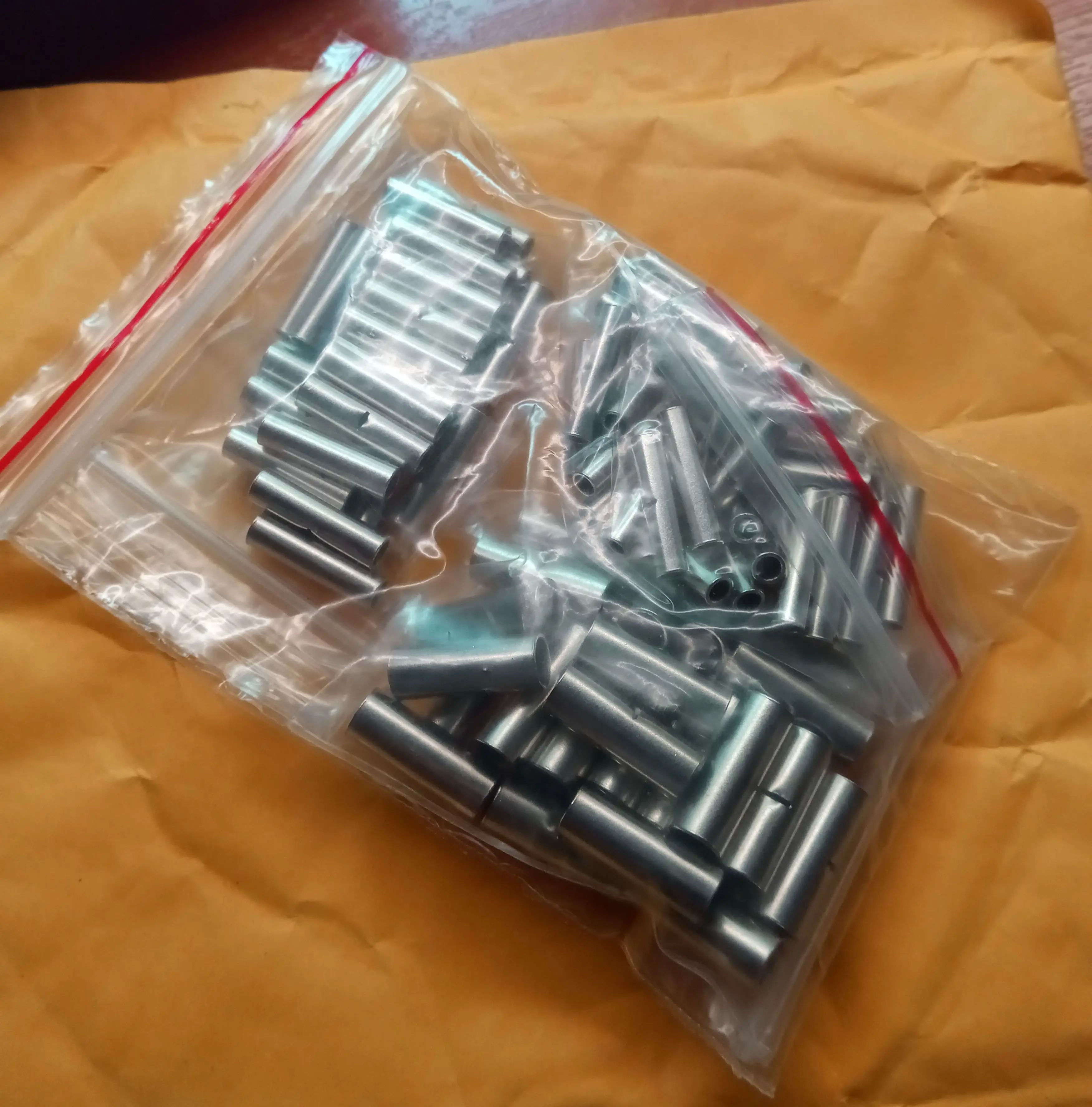 Пришло быстро. Заказывал сразу трёх размеров. Отличные гильзы, годятся как соединитель, так и в качестве наконечника (в последнем случае предварительно надо гвоздиком выправить ограничитель посередине, иначе провод не протолкнуть до конца). Рекомендую.