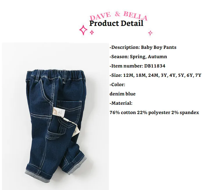 DB11834 dave bella Модные осенние штаны для маленьких мальчиков, детские длинные однотонные штаны, Джинсы для малышей icon star icon star icon star icon star icon star