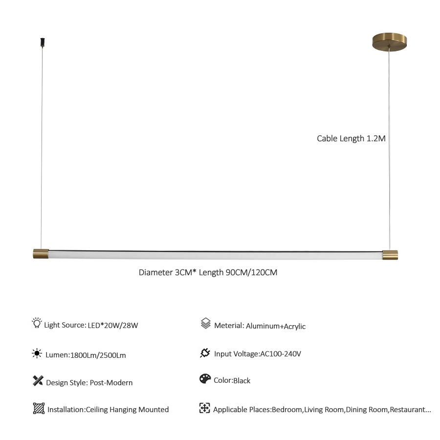 Современный минималистичный светодиодный подвесной светильник в виде трубки 90 см, 120 см, светильник щение для столовой, освещение для s AC100-240V