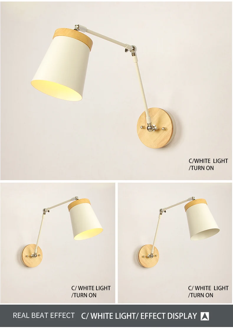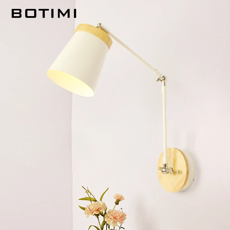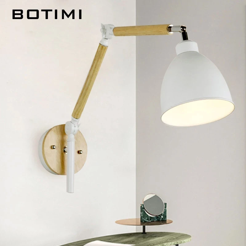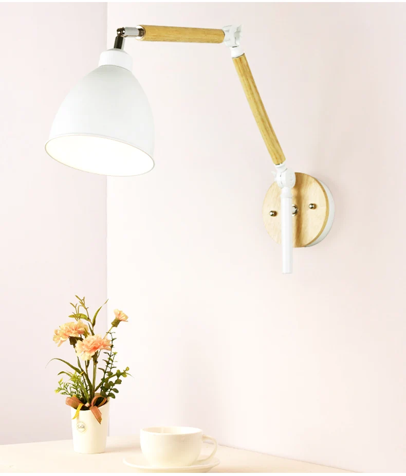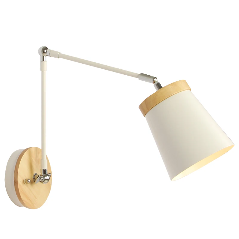 Светодиодная настенная деревянная лампа в скандинавском стиле, регулируемое металлическое прикроватный абажур светильник для чтения, белый светильник для чтения, 2021