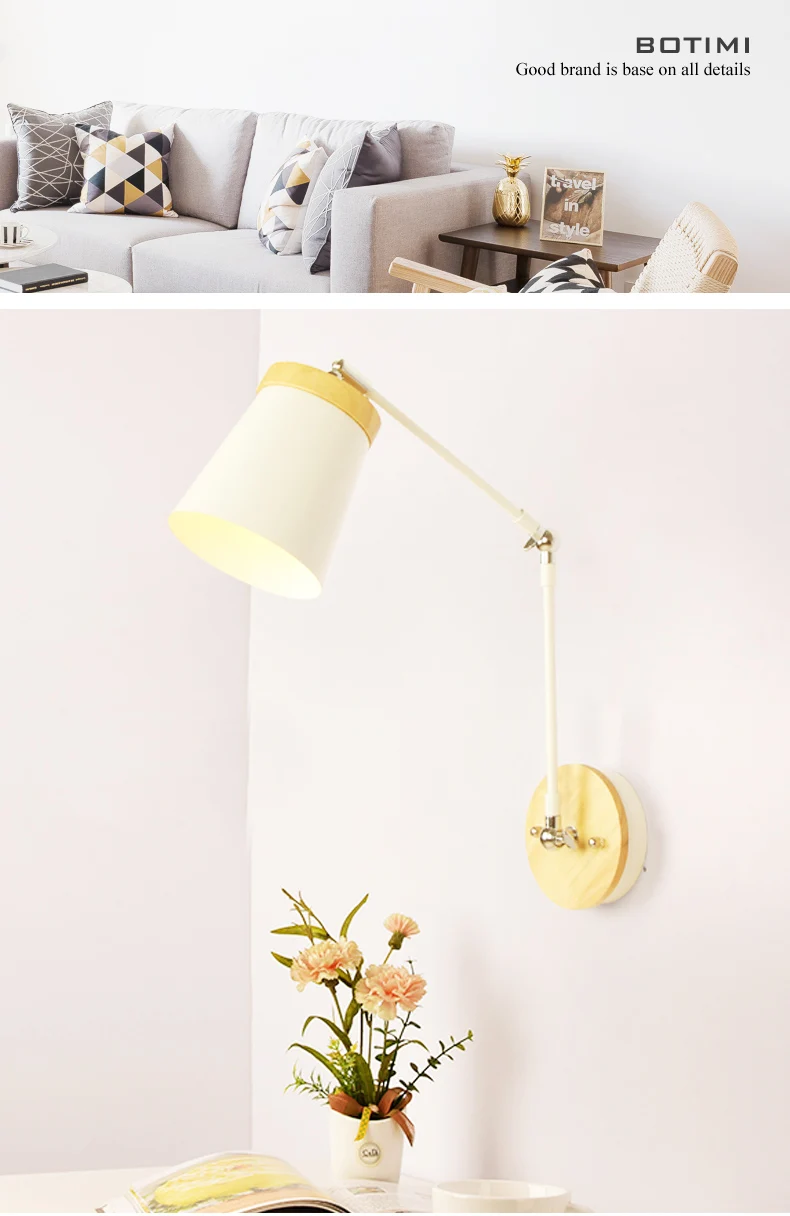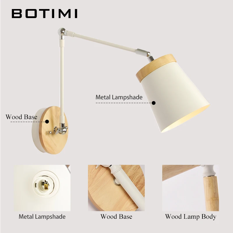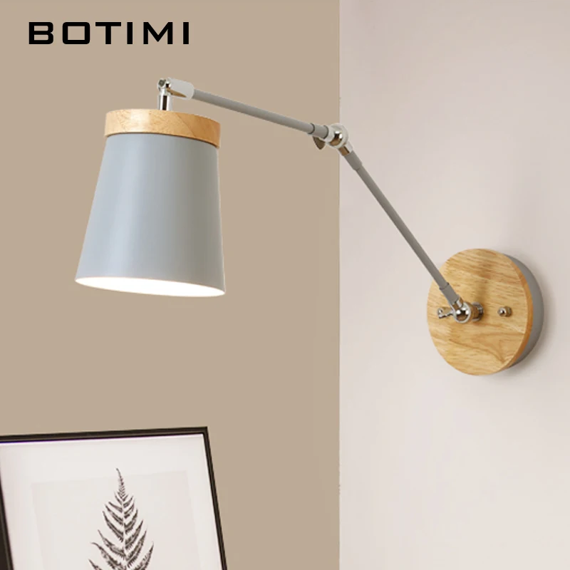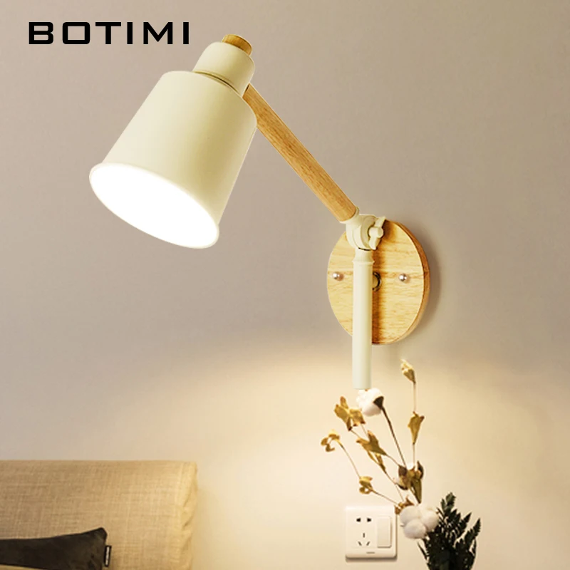 Светодиодная настенная деревянная лампа в скандинавском стиле, регулируемое металлическое прикроватный абажур светильник для чтения, белый светильник для чтения, 2021