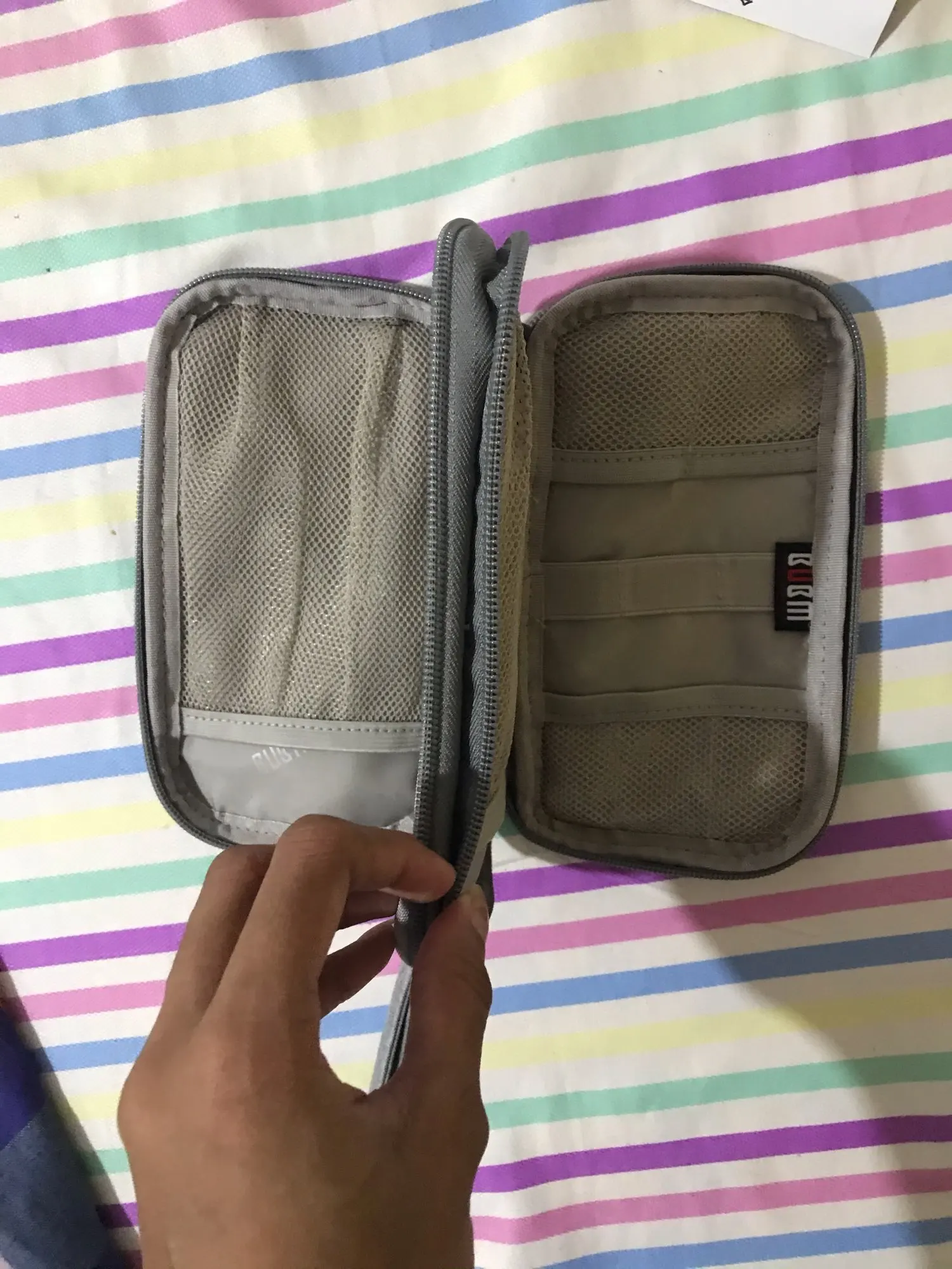 Отличный Чехол для предметов, как кабели, разъемы, внешний аккумулятор и т. Д., чтобы носить предметы, организованные во время поездки. Собственная продукция других брендов. Хорошее качество. Рекомендуется