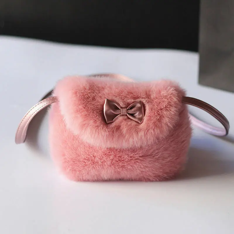 Милые детские мини-сумки через плечо с бантом для девочек, мягкие меховые сумки, Подарочный кошелек, сумка через плечо, плюшевые рюкзаки, портмоне
