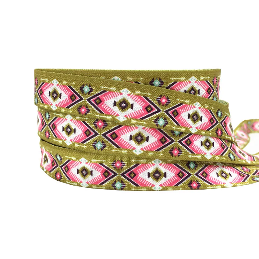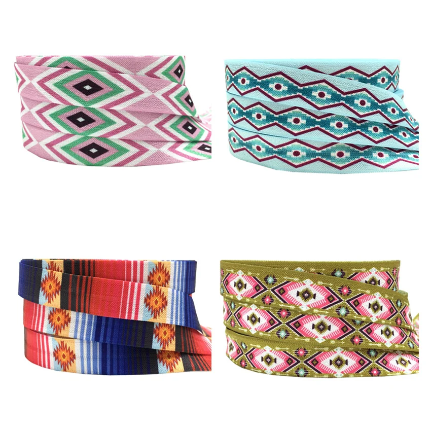 10 ярдов 16 мм геометрические стрелки напечатаны складки над эластичным ацтекским врагом аксессуары ручной работы DIY волосы галстук вечерние ленты Декор
