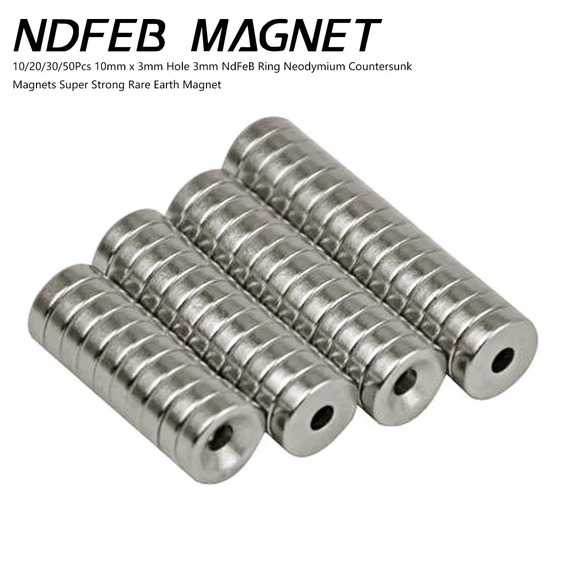 Неодимовые магниты с потайной головкой, 10x3 мм, отверстие 3 мм, кольцо N35 NdFeB, 10x3, 10203050 шт.