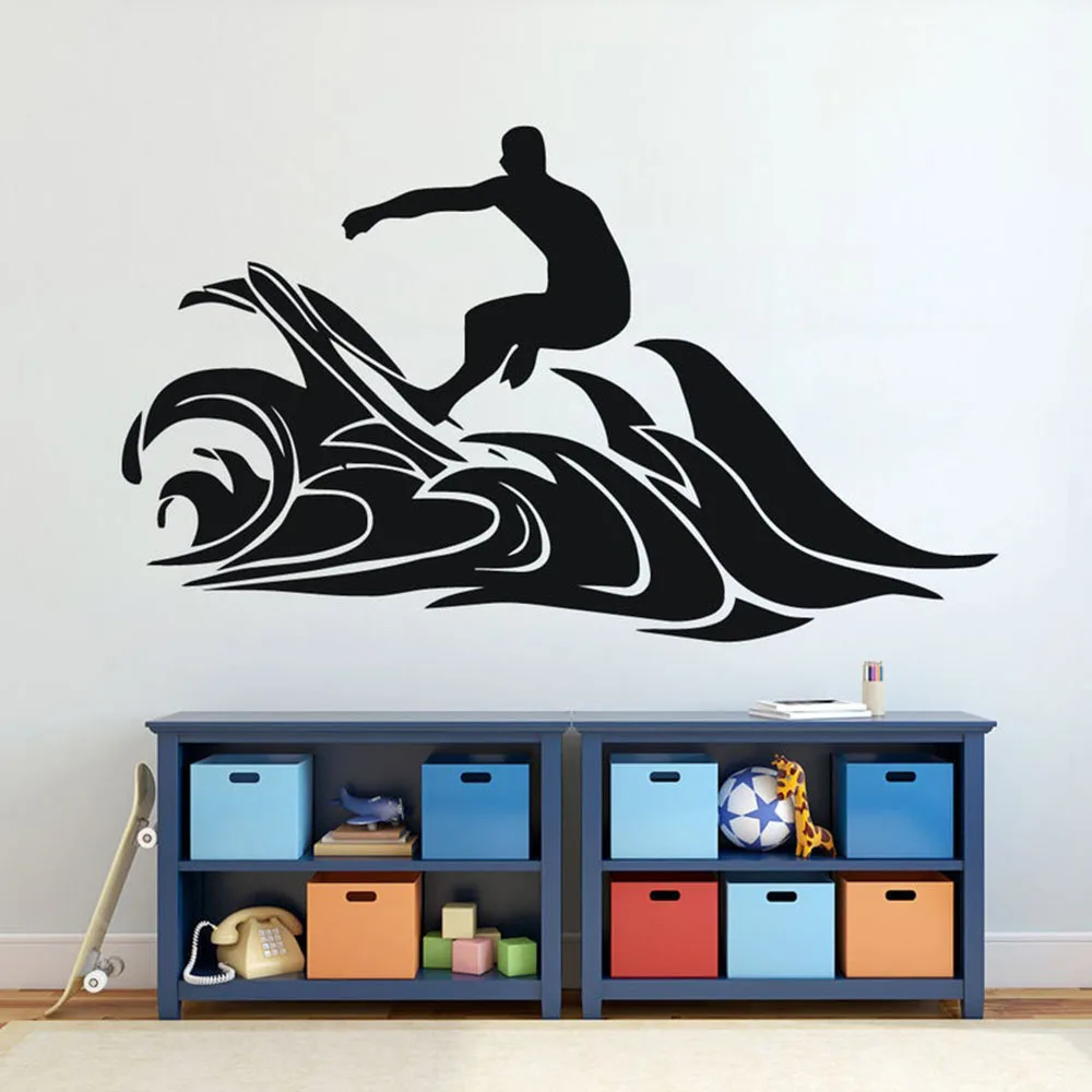 Настенные виниловые наклейки с силуэтом волн и серфинга для мальчиков