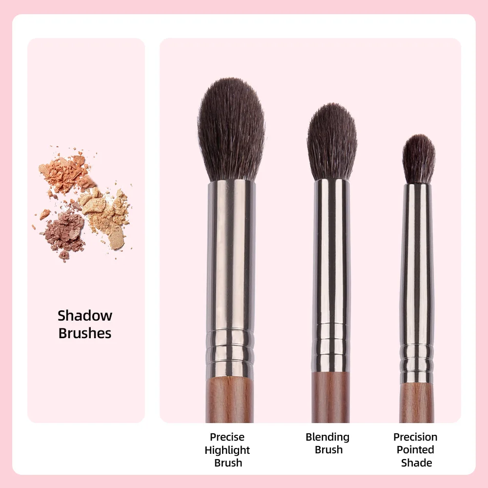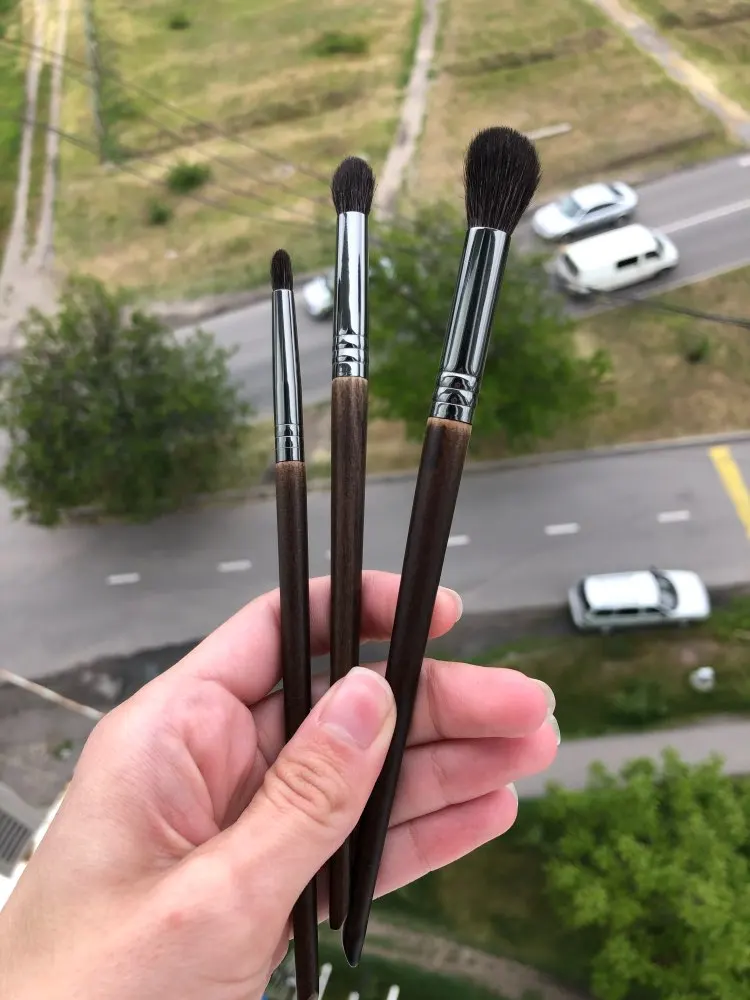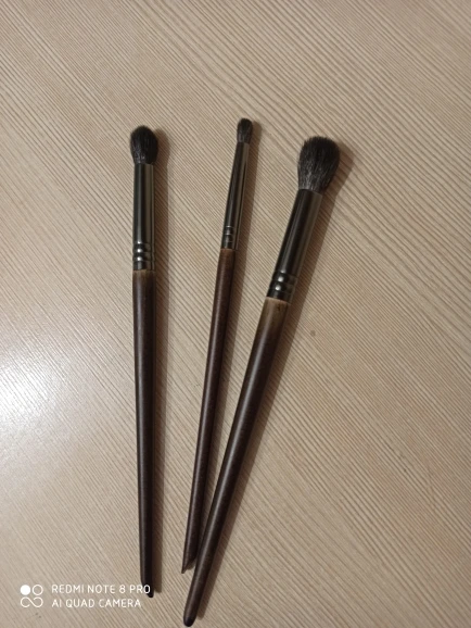 Хорошие кисти, натуральные, соответствуют описанию и фото.Быстрая оправка и доставка. Тени набирают и отдают очень хорошо, не лезут и не колятся. Радует что на ручке нет надписей, не подделка под бренд