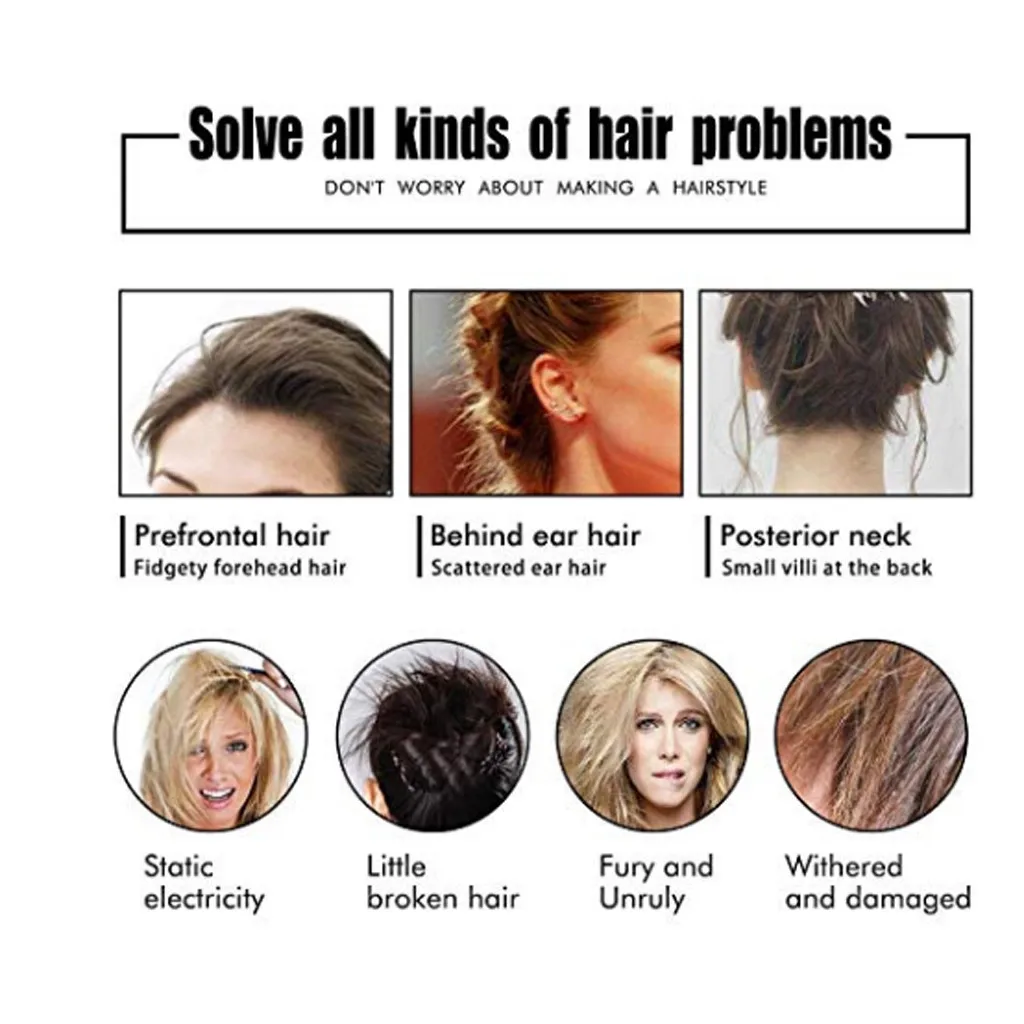 【Легко использовать 】-быстро отделать сломанные волосы, легко использовать, подходит для всех видов причесок, прямые волосы, кудрявые волосы, это может эффективно помочь вам зафиксировать небольшие волосы или челку, сделайте вас более изысканным и красивым. Подходит для всех случаев, включая свадьбы, свидания, шоппинг, вечеринки и так далее.