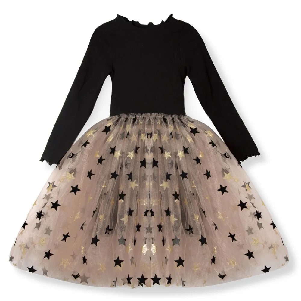 Платье с длинными рукавами для маленьких девочек праздничное платье принцессы с блестками и звездами детская повседневная одежда зимняя повседневная одежда Vestido Infantil