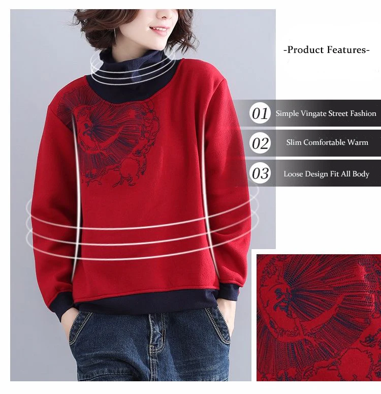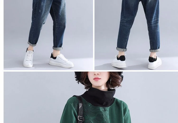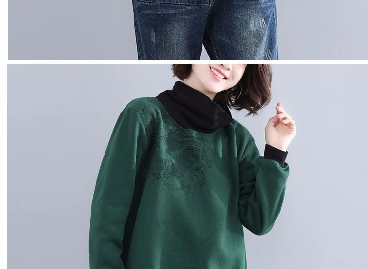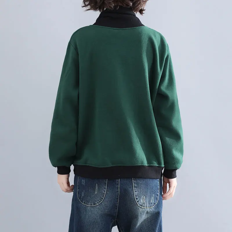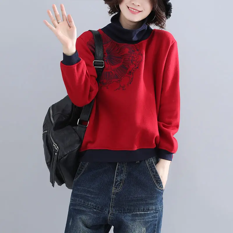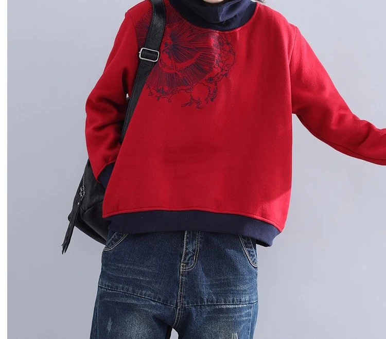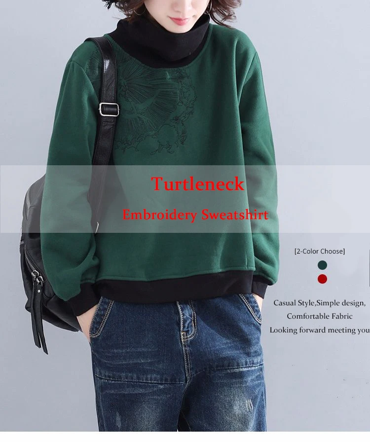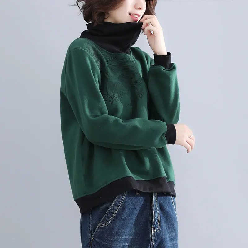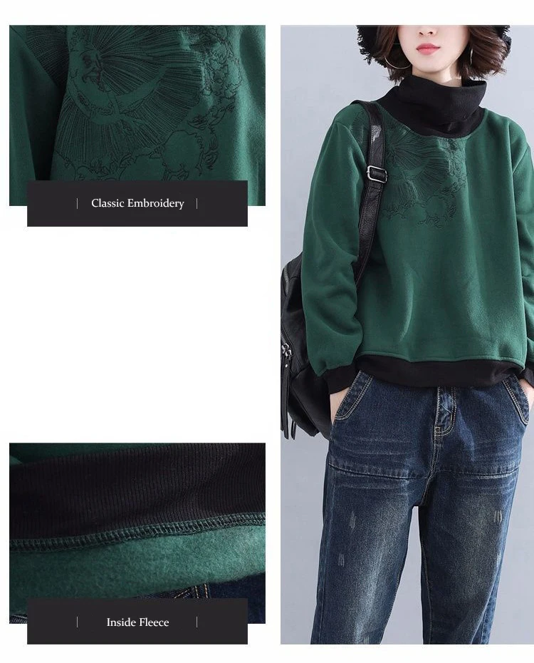 Женская укороченная толстовка, винтажная толстовка с вышивкой в стиле Харадзюку, из хлопка и флиса, с высоким воротником, размера плюс, осенняя женская одежда
