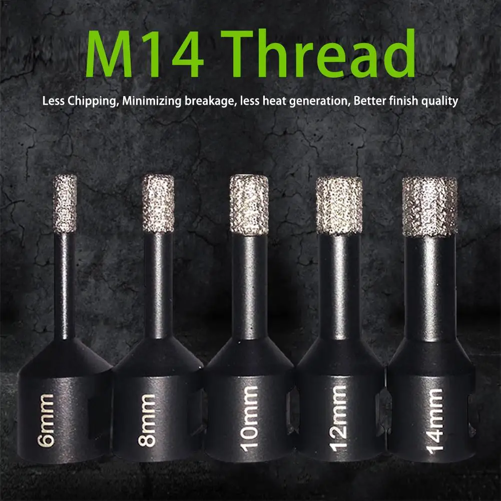 Профессиональные вакуумные сверла с алмазным напылением для сухого вакуумного сверления, сверла для керамической плитки, сверла для гранита, мрамора, резьба M14