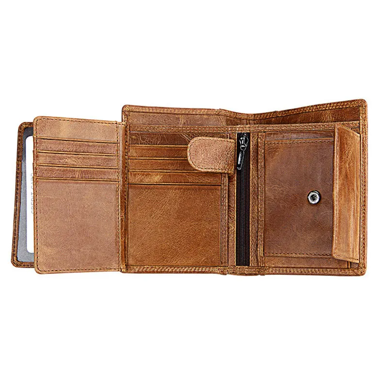 Мужские кошельки из воловьей кожи, короткий кошелек для монет на молнии, масляный воск, кредитная сумка держатель для карт, вместительный клатч, карманная сумка для денег