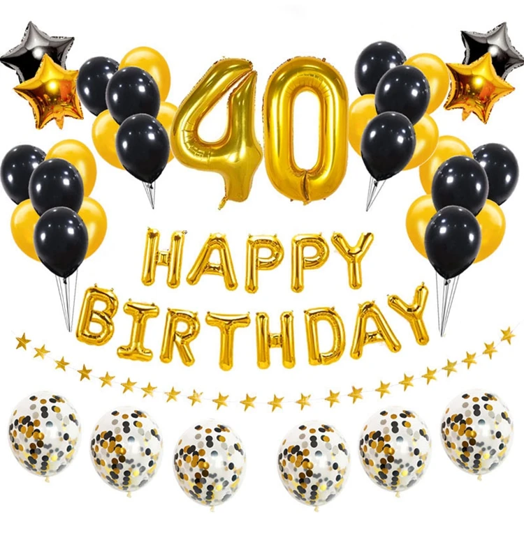 Воздушные шары из фольги, золотистыечерные шарики в форме цифр, 40 ...