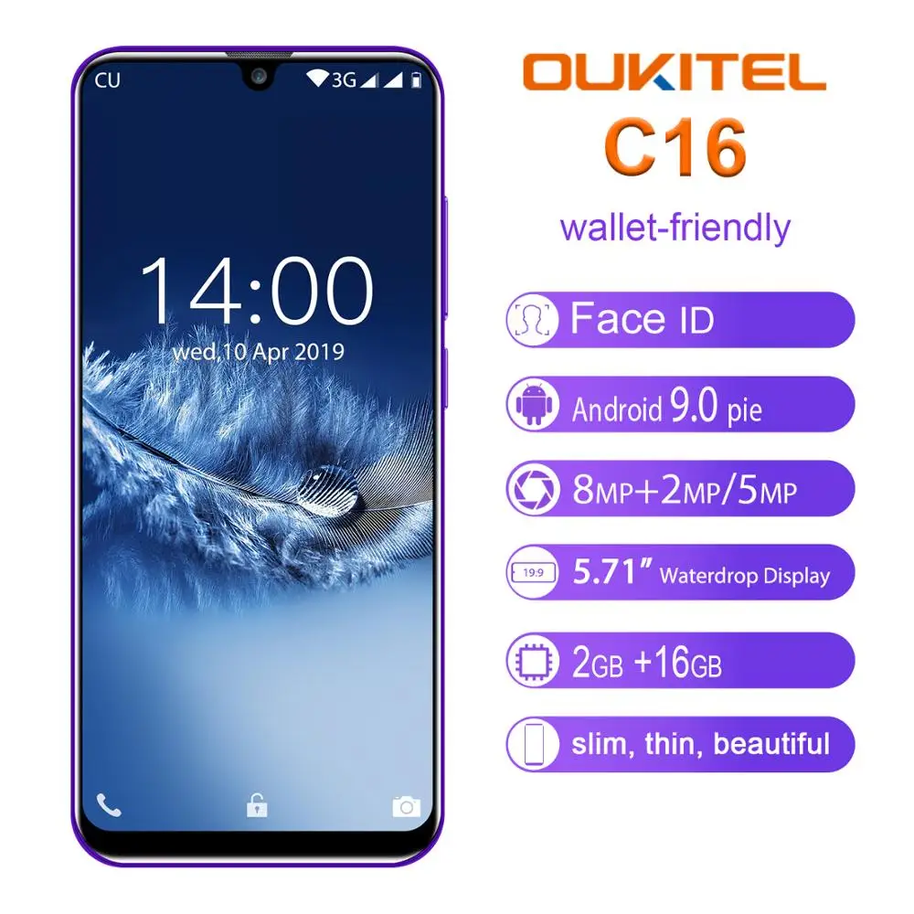 OUKITEL C16 C16 Pro 5,71 "Android 9,0 19:9 мобильный телефон с экраном капли воды 3 ГБ ОЗУ 32 Гб ПЗУ смартфон Двойная Задняя камера мобильный телефон