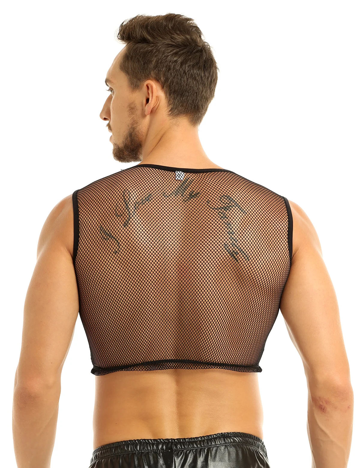 Мужская сетчатая одежда для клуба вечерние косплей футболка без рукавов прозрачные сетчатые вечерние футболки для вечеринки