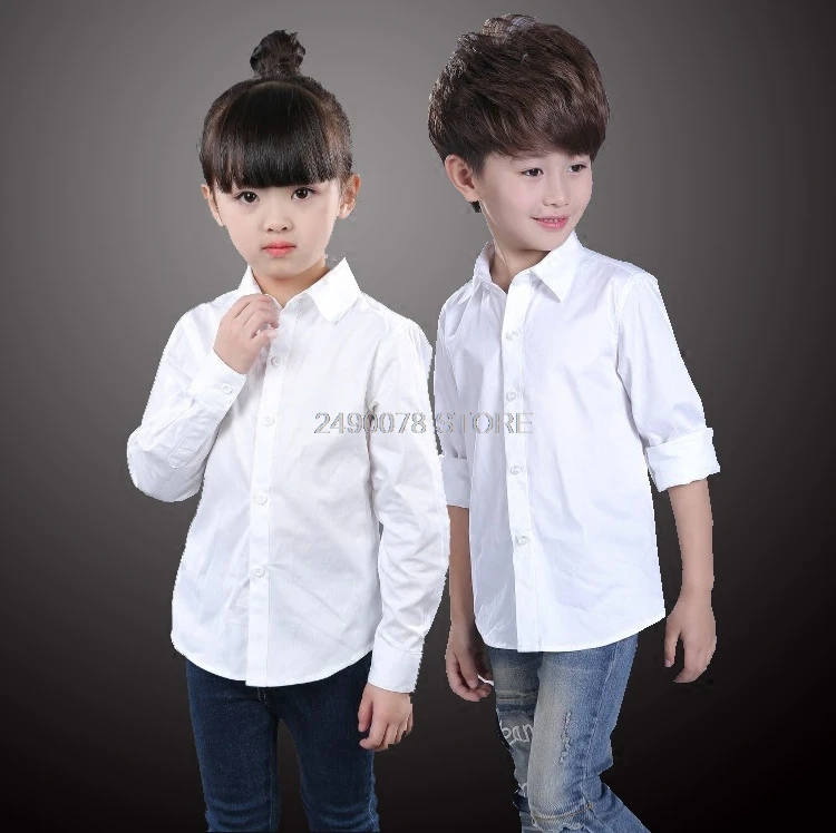 Школьная официальная рубашка для мальчиков и девочек, брендовая Модная белая рубашка с длинным рукавом для мальчиков, детская одежда для выступлений, блузка