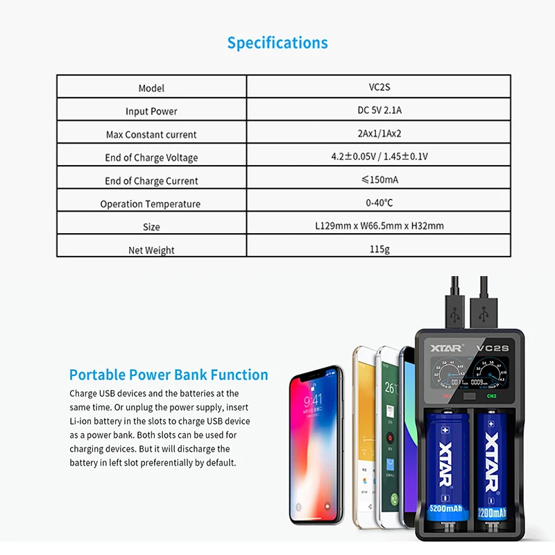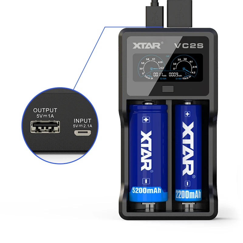Внешний аккумулятор XTAR VC2S 18650, зарядное устройство для аккумуляторов 3,6 В 10400-26650, литий-ионные аккумуляторы 20700, 21700, 18650, зарядное устройство