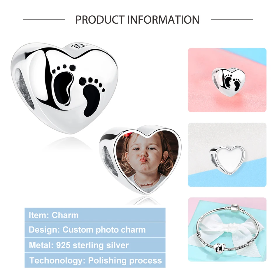 Детские бусины в форме сердца, 925 пробы, серебро, на заказ, фото, ...