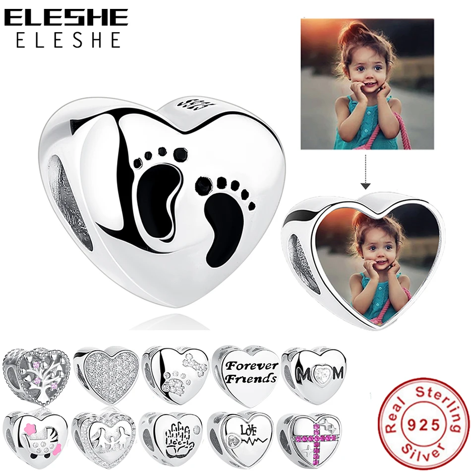 ELESHE Бесплатная гравировка имени и бесплатная доставка для студийной съемки под заказ Очаровательные бусы 925 пробы серебряные браслеты с подвесками сделай сам, ювелирное изделие