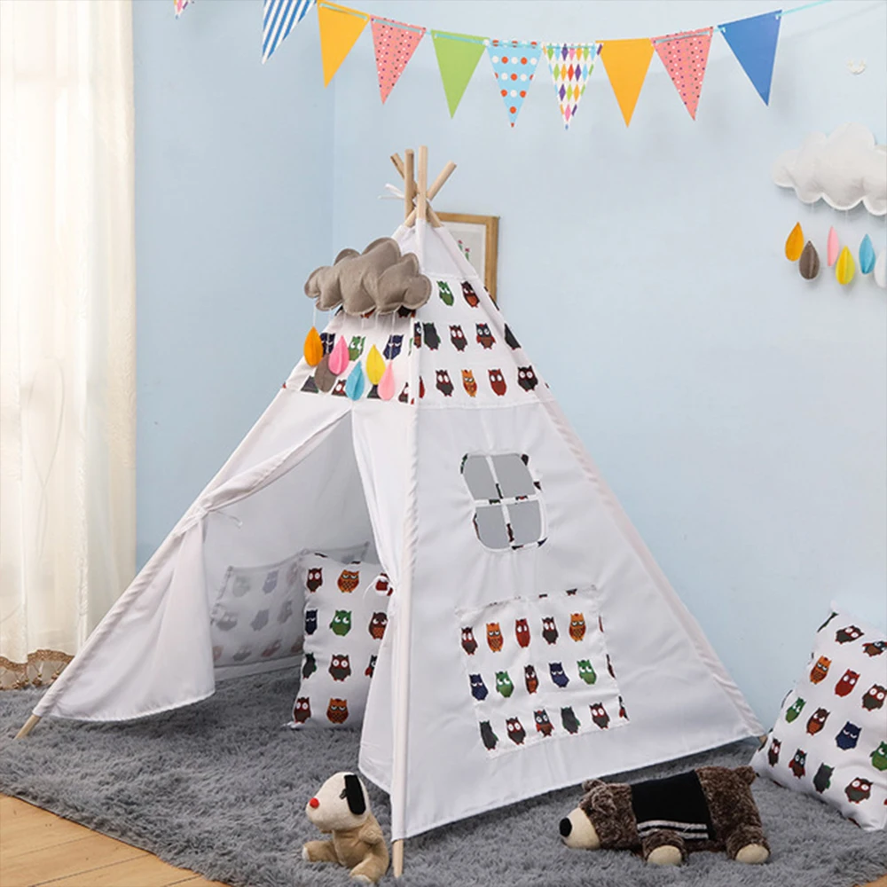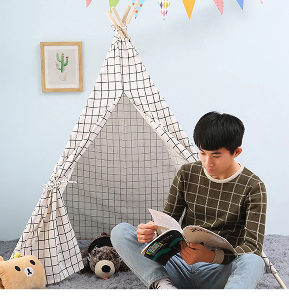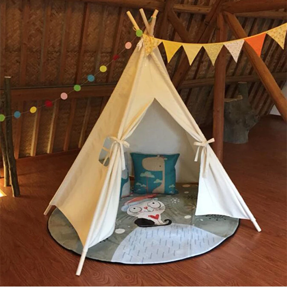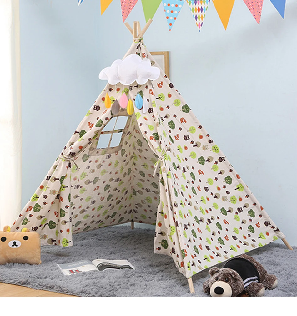 Палатка детская складная, для игр, вигвам, мультяшная, милая, индийская, детская, для улицы, детский игровой домик, холщовая, хлопковая, треугольная