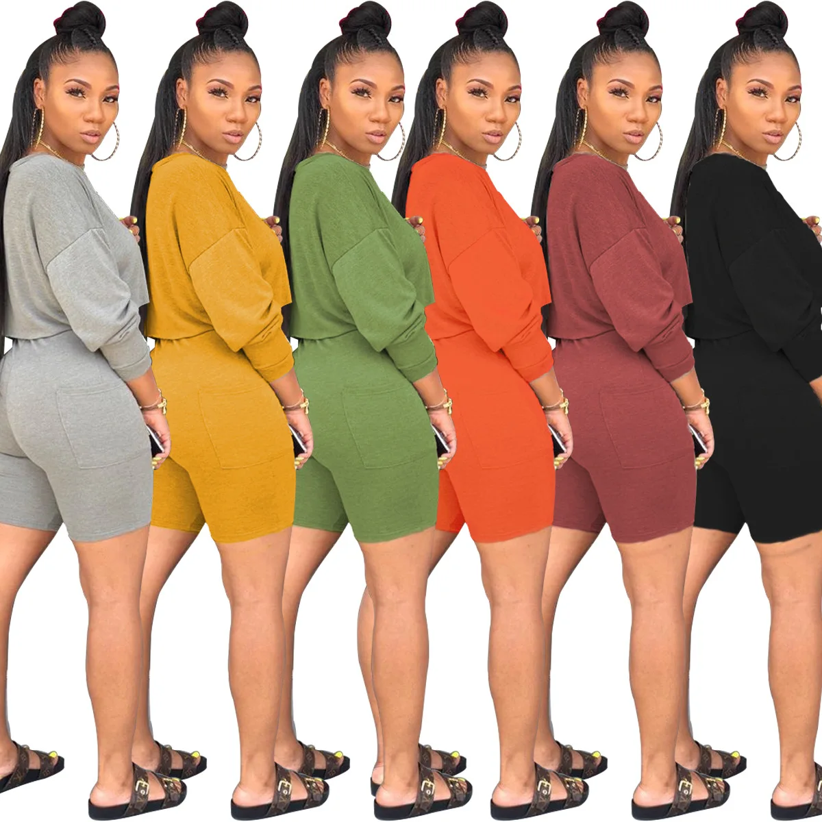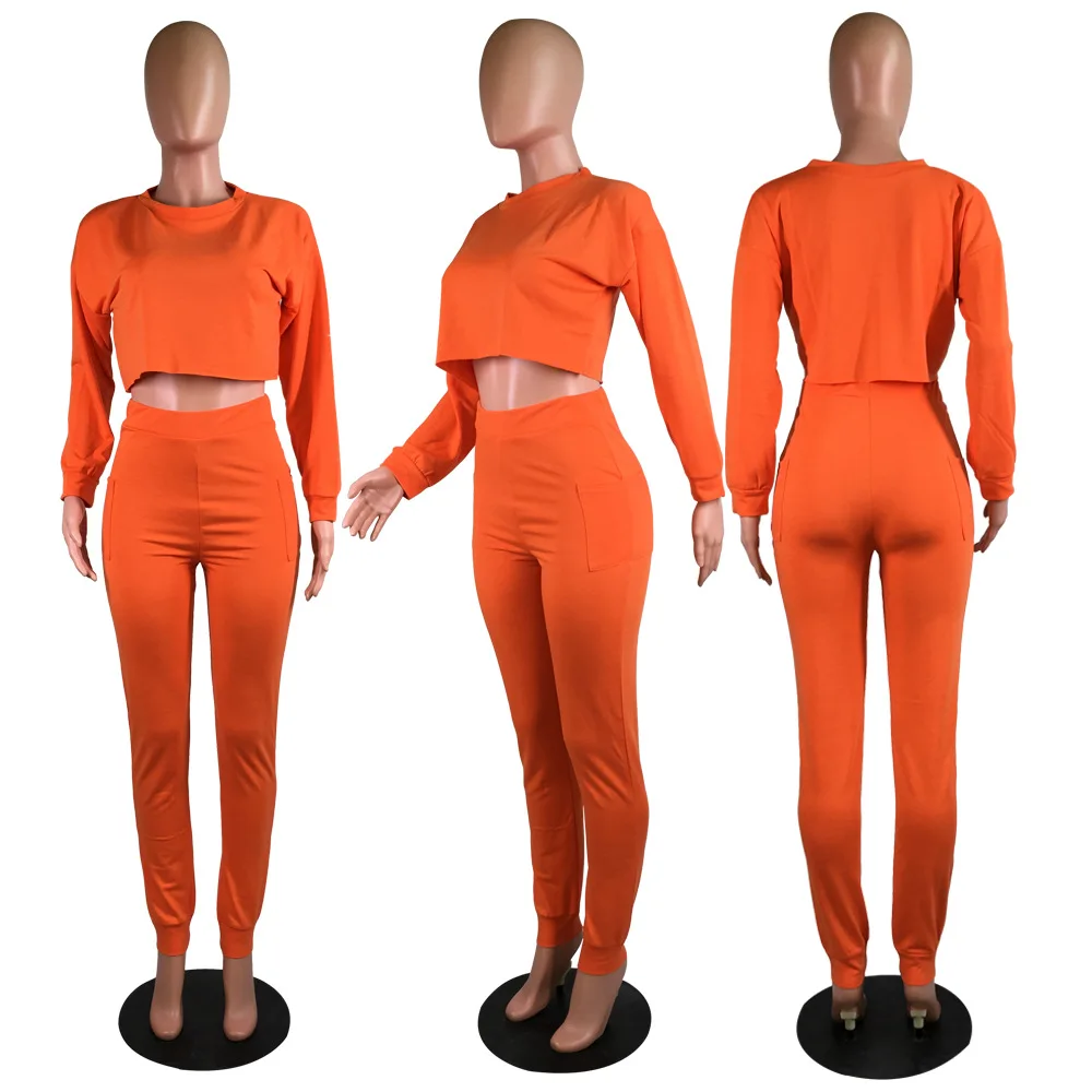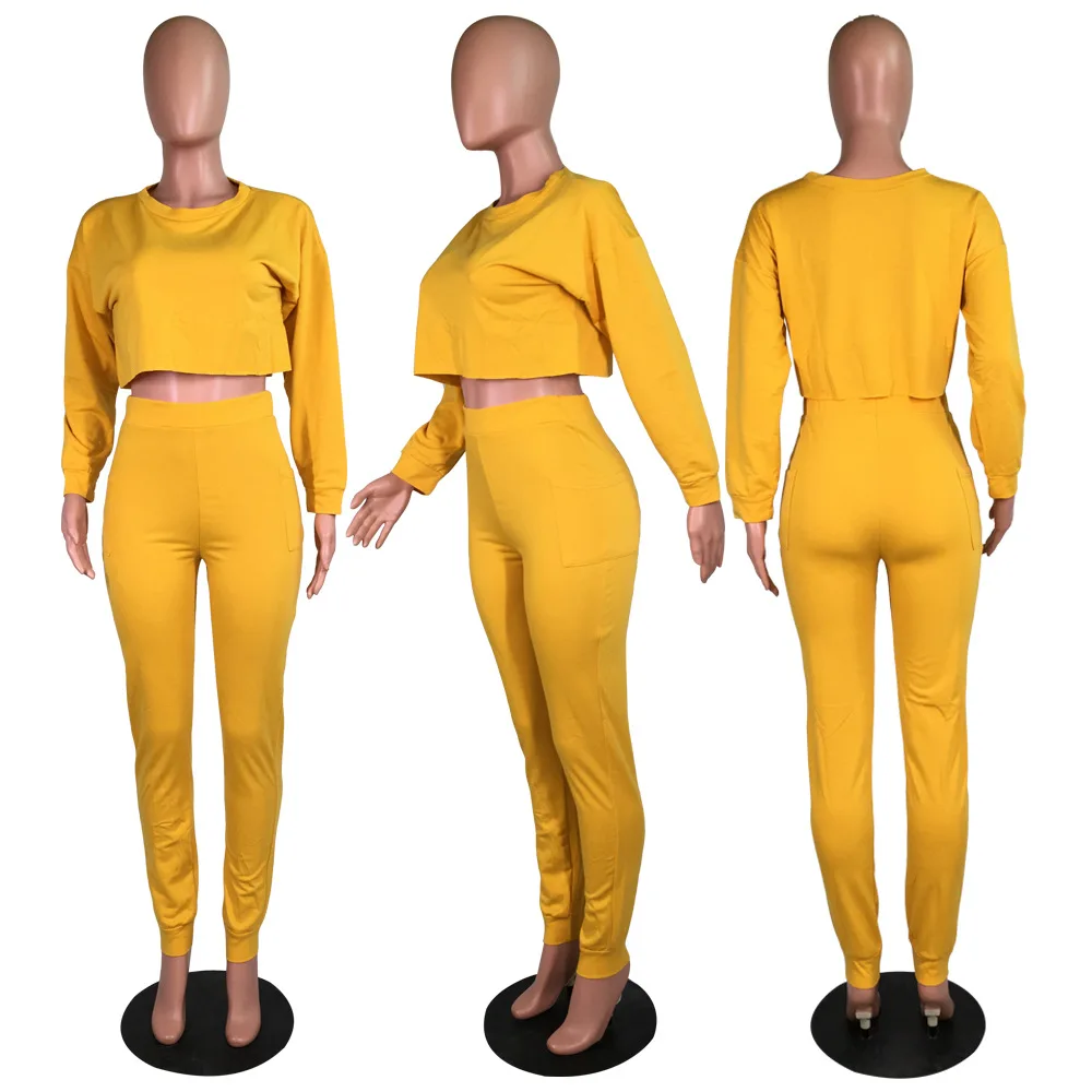 Женский костюм с круглым вырезом Echoine, Осенний однотонный костюм из двух предметов, толстовка с длинным рукавом и брюки с карманами, 5 цветов, размера плюс, 2XL