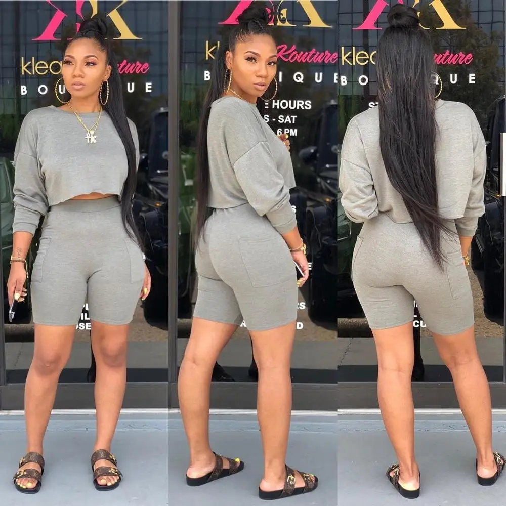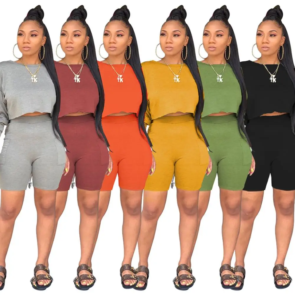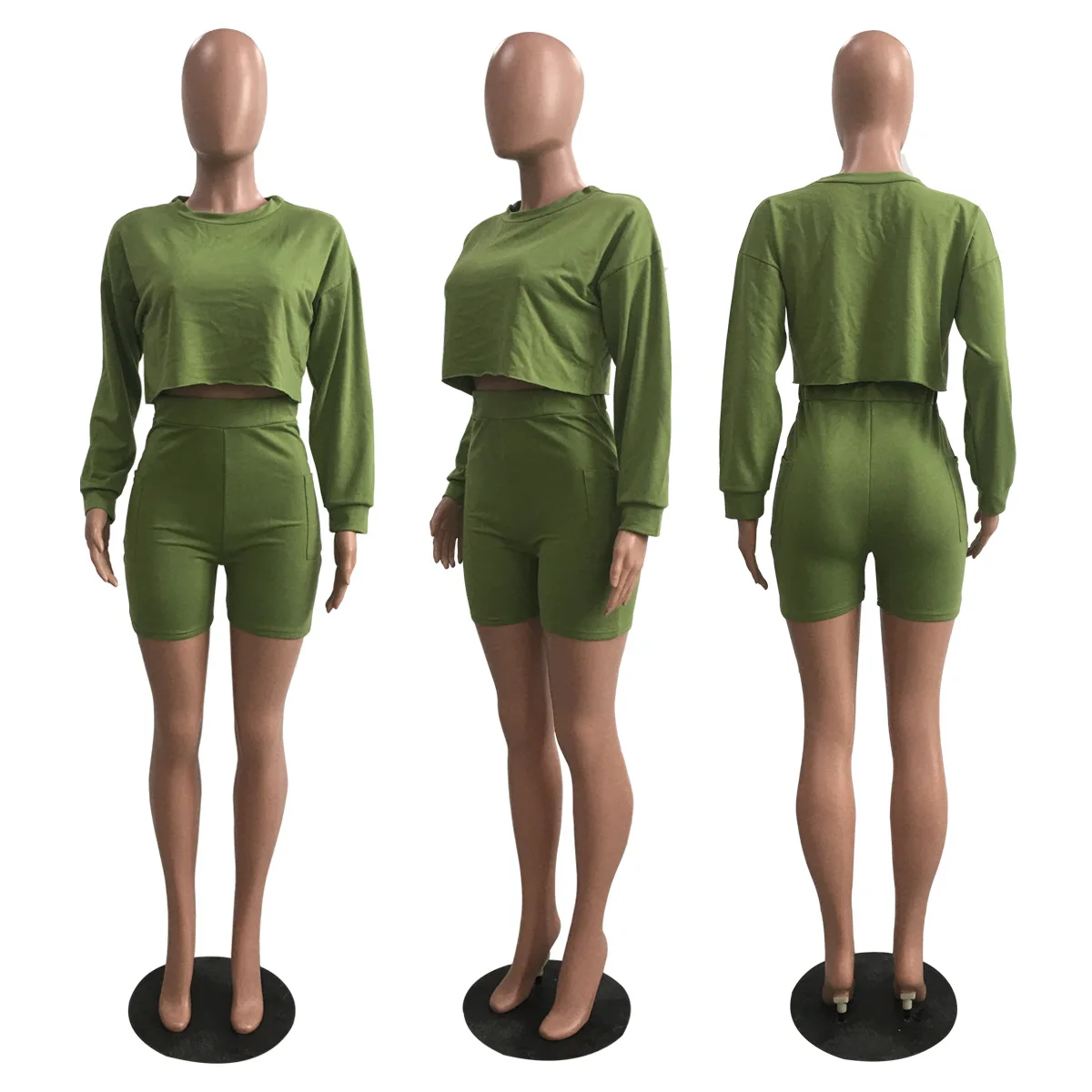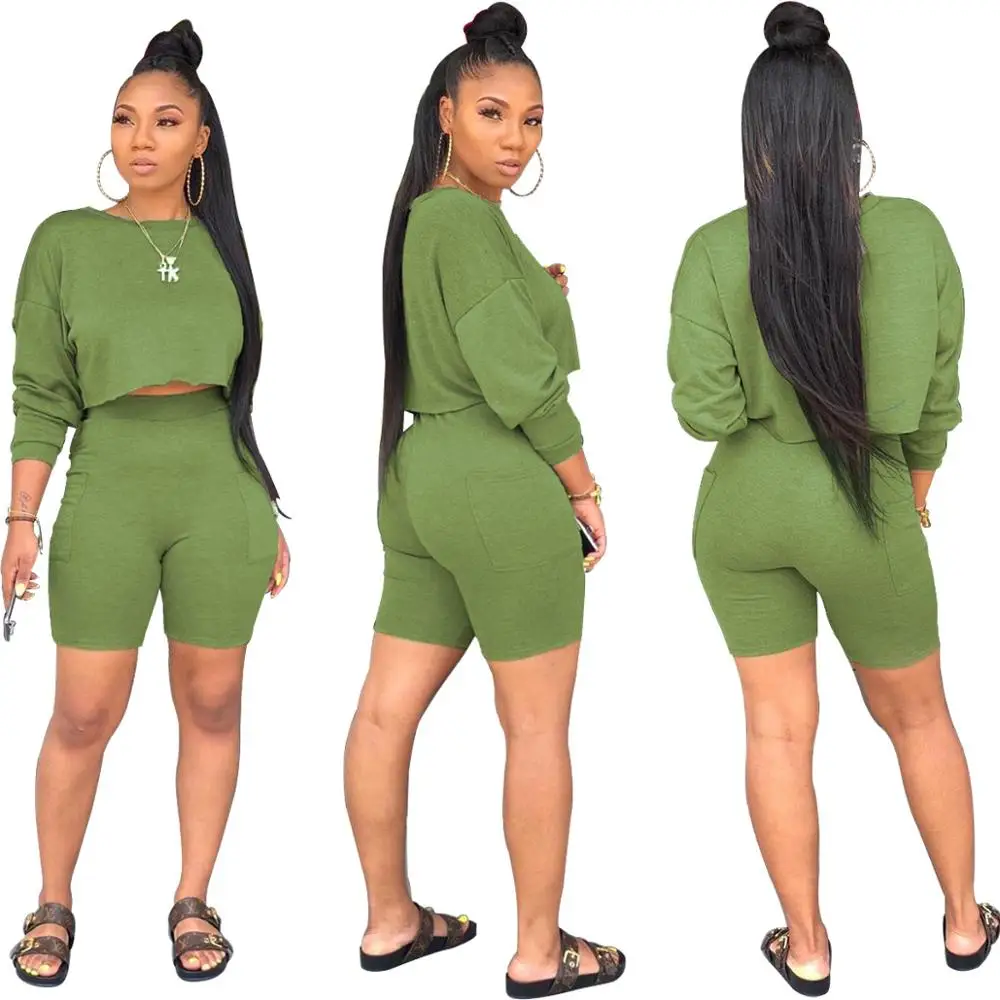 Женский костюм с круглым вырезом Echoine, Осенний однотонный костюм из двух предметов, толстовка с длинным рукавом и брюки с карманами, 5 цветов, размера плюс, 2XL