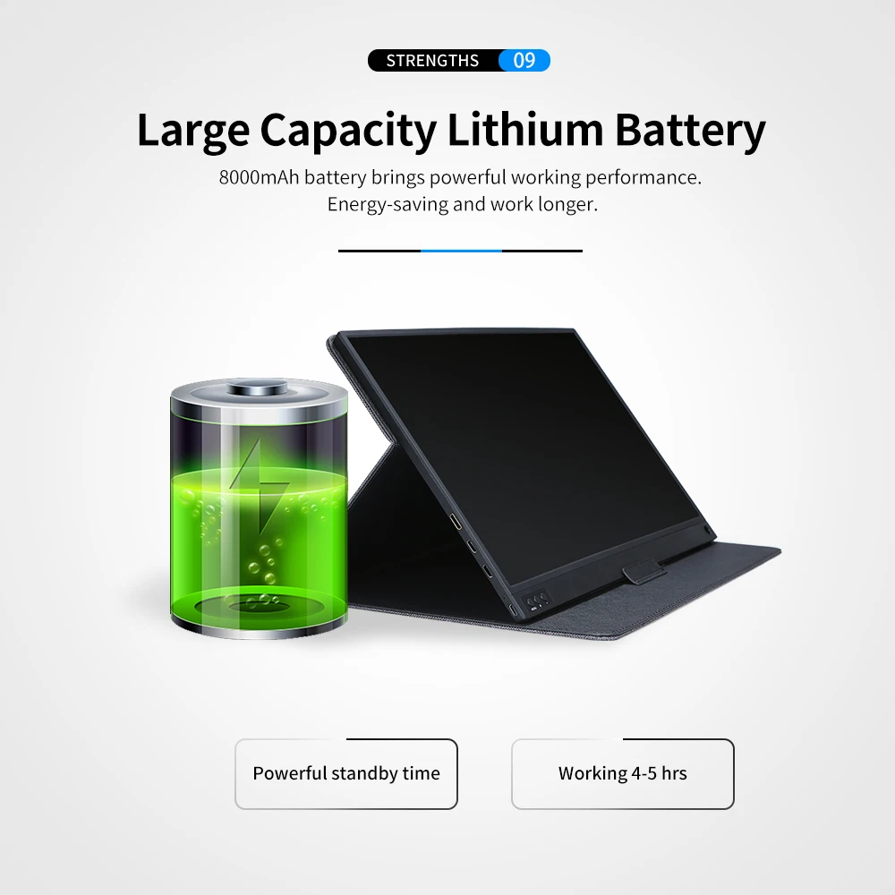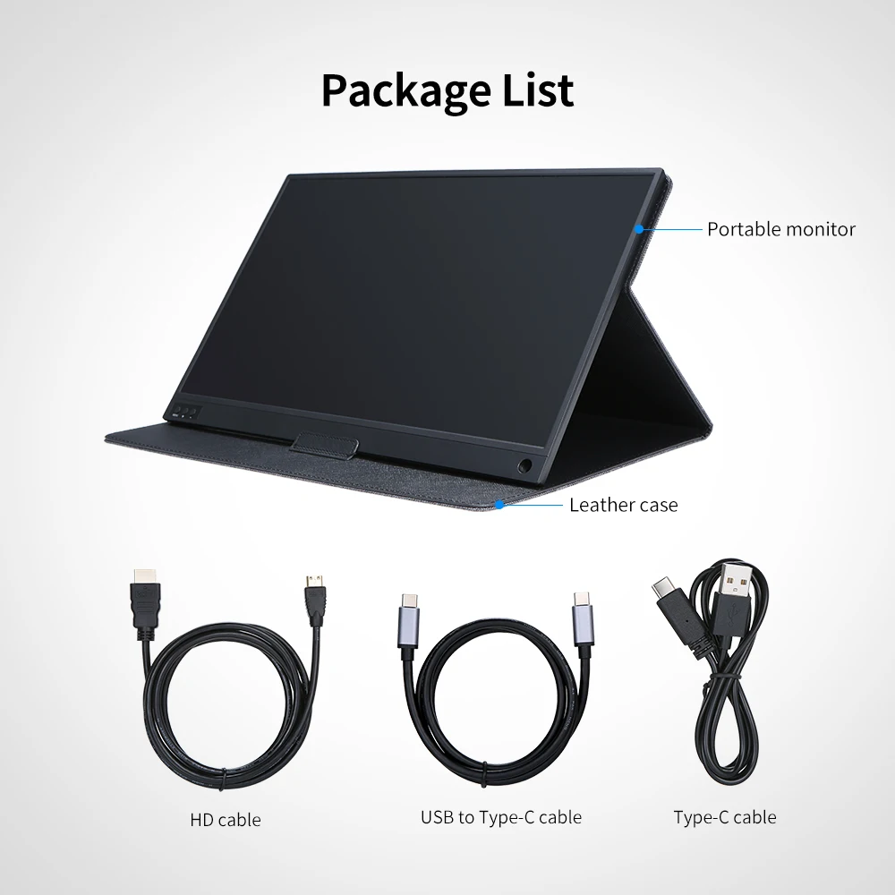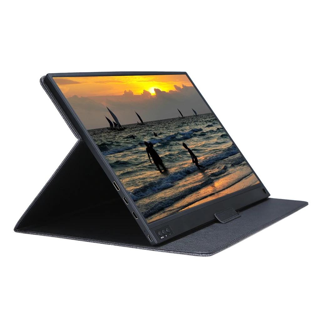 Портативный монитор T-bao, 1920x1080, HD IPS, 15,6 дюйма, сенсорный экран, 8000 мА ч, перезаряжаемый аккумулятор, с кожаным чехлом