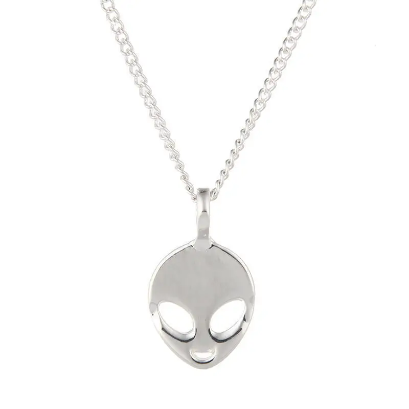 Трендовая Классическая простая Подвеска из металла с изображением инопланетянина, Женская цепочка для ключиц, Золотое и серебряное ожерелье, колье, повседневное колье
