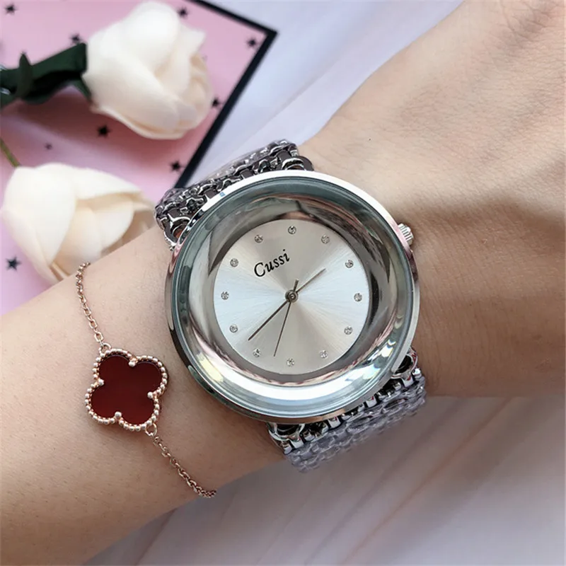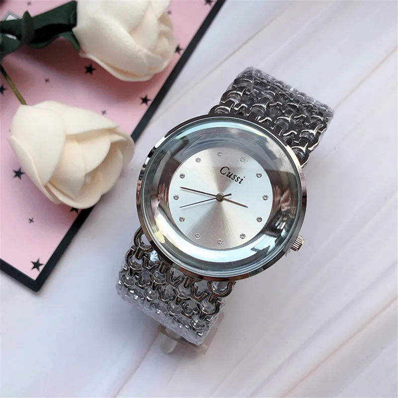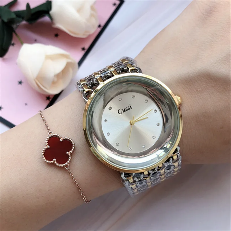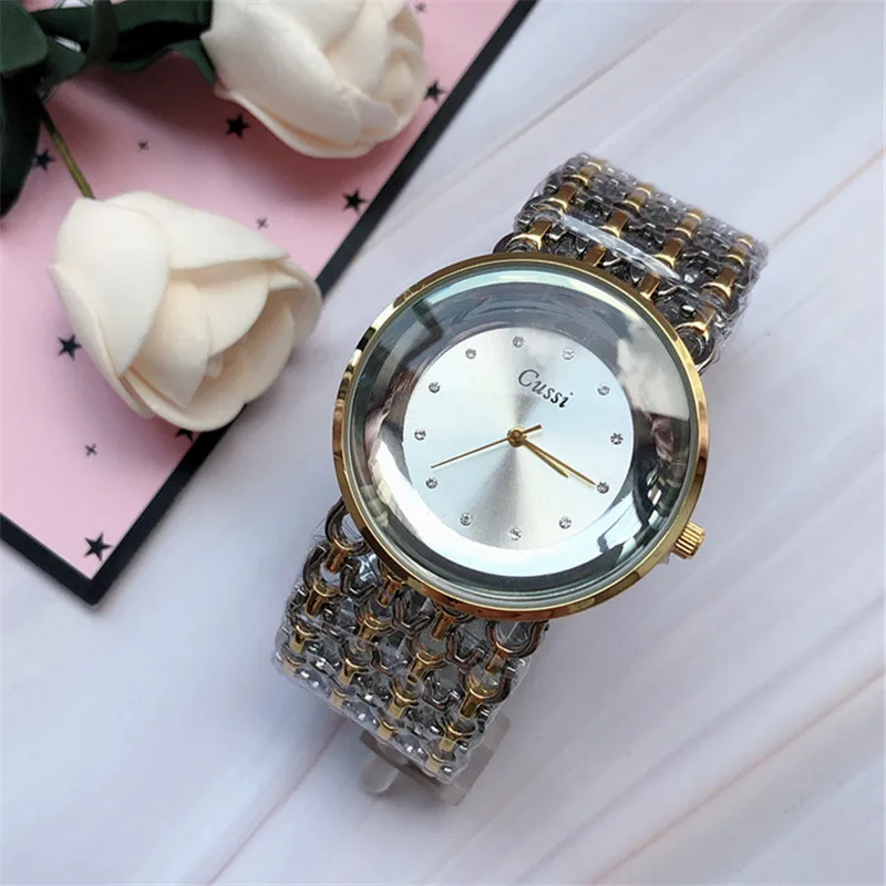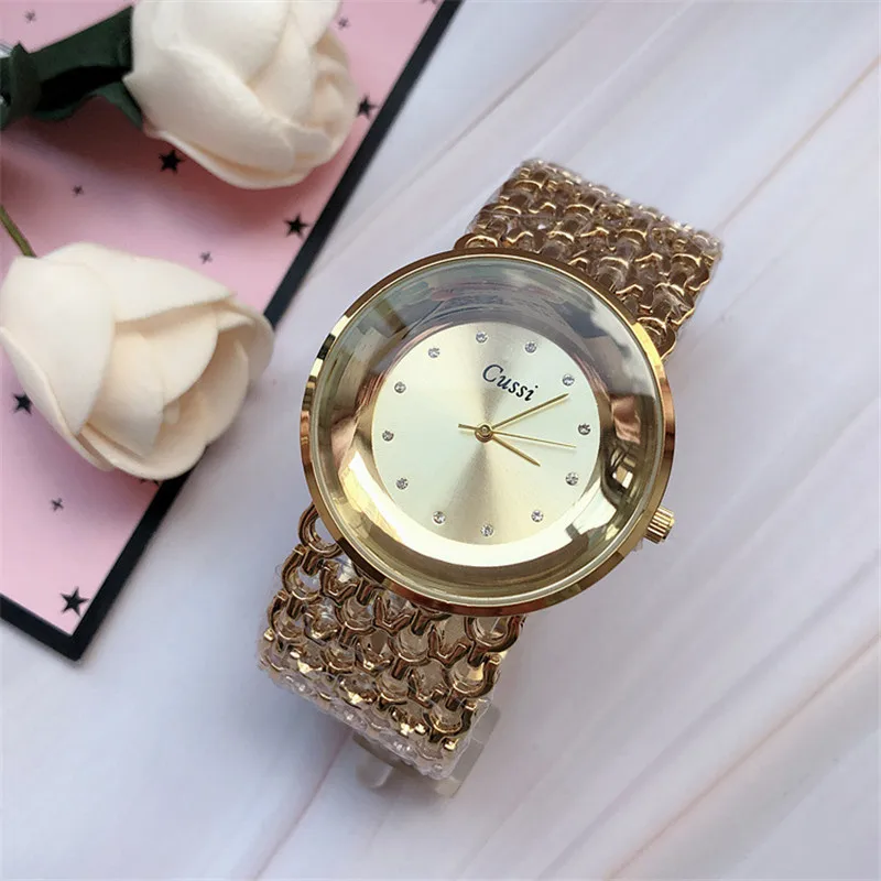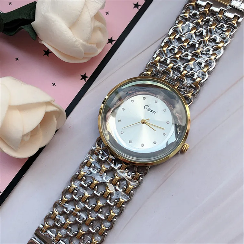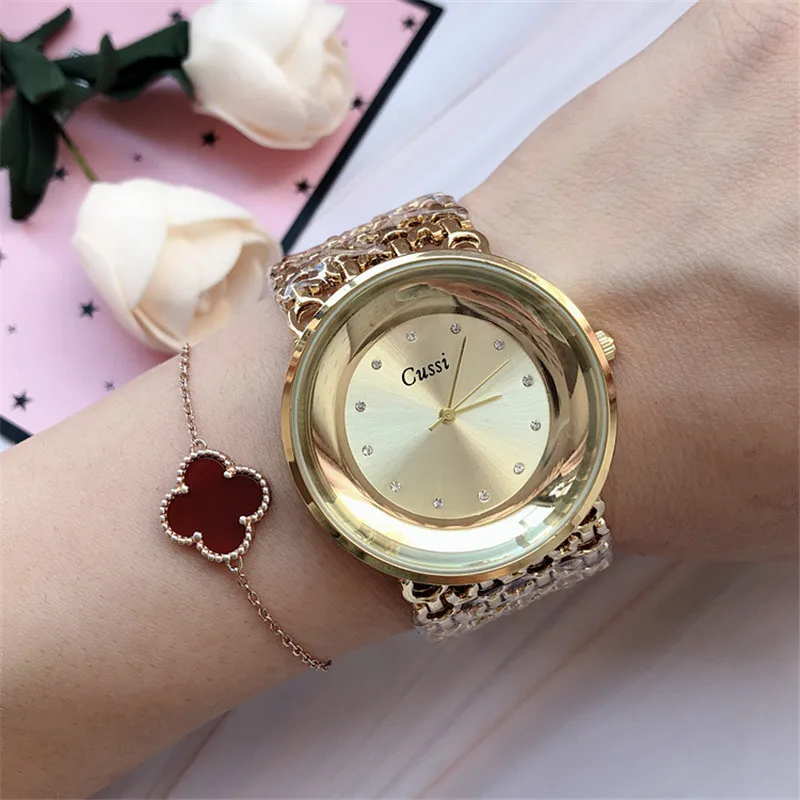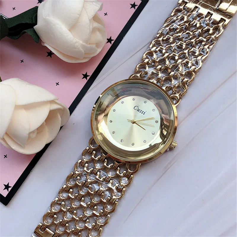 Часы Cussi женские кварцевые, брендовые Роскошные наручные с большим циферблатом, золотистые, 2019