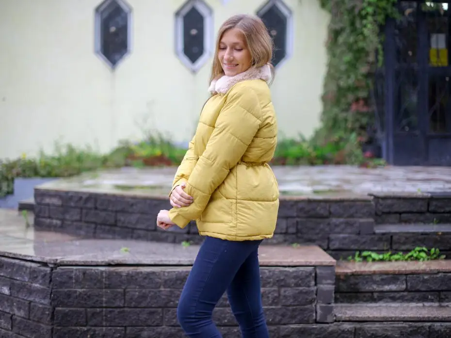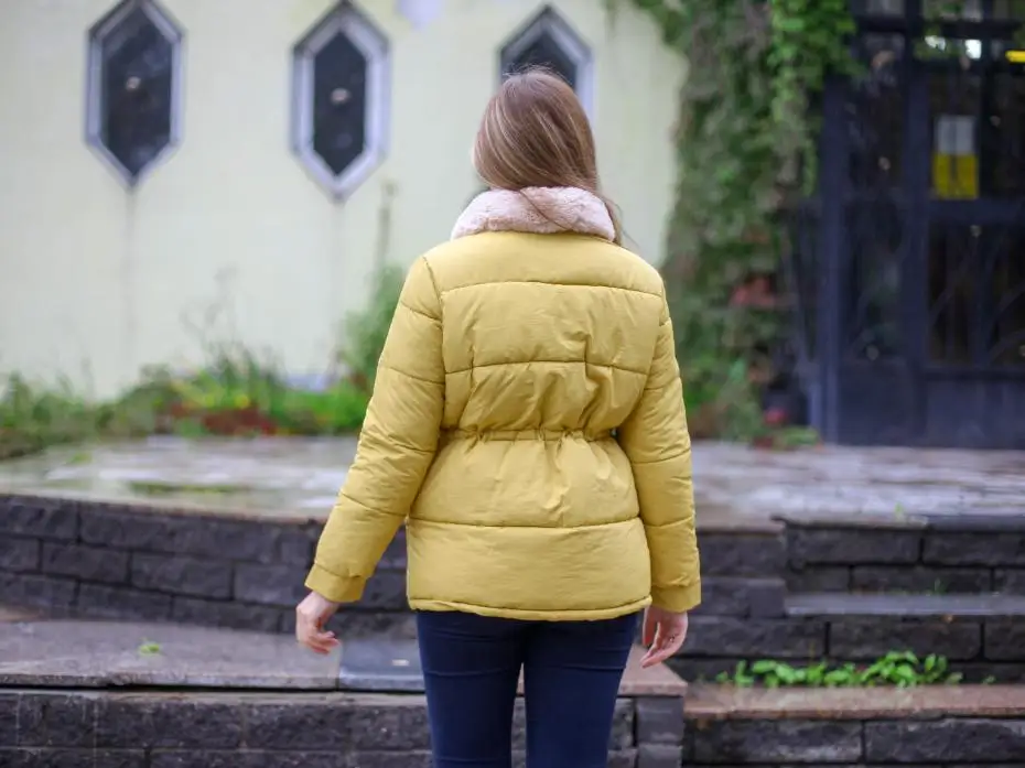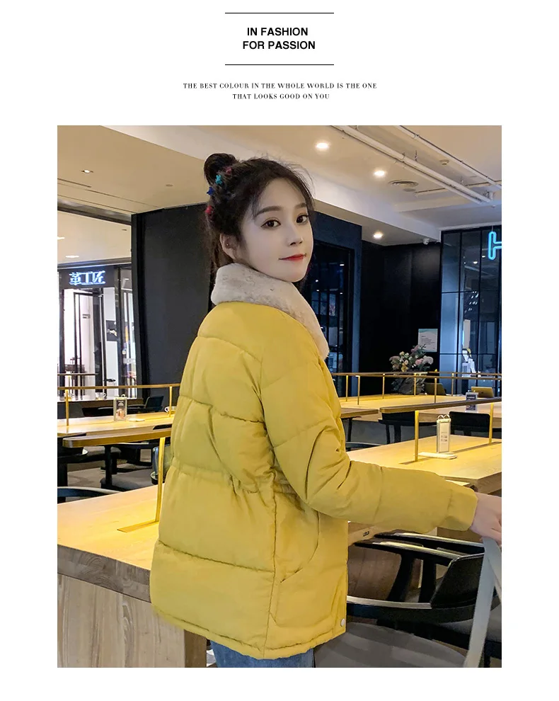 Куртка женская короткая с подкладкой, облегающая Повседневная Верхняя одежда с отложным воротником, желтая парка, Осень-зима