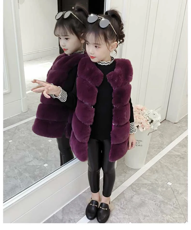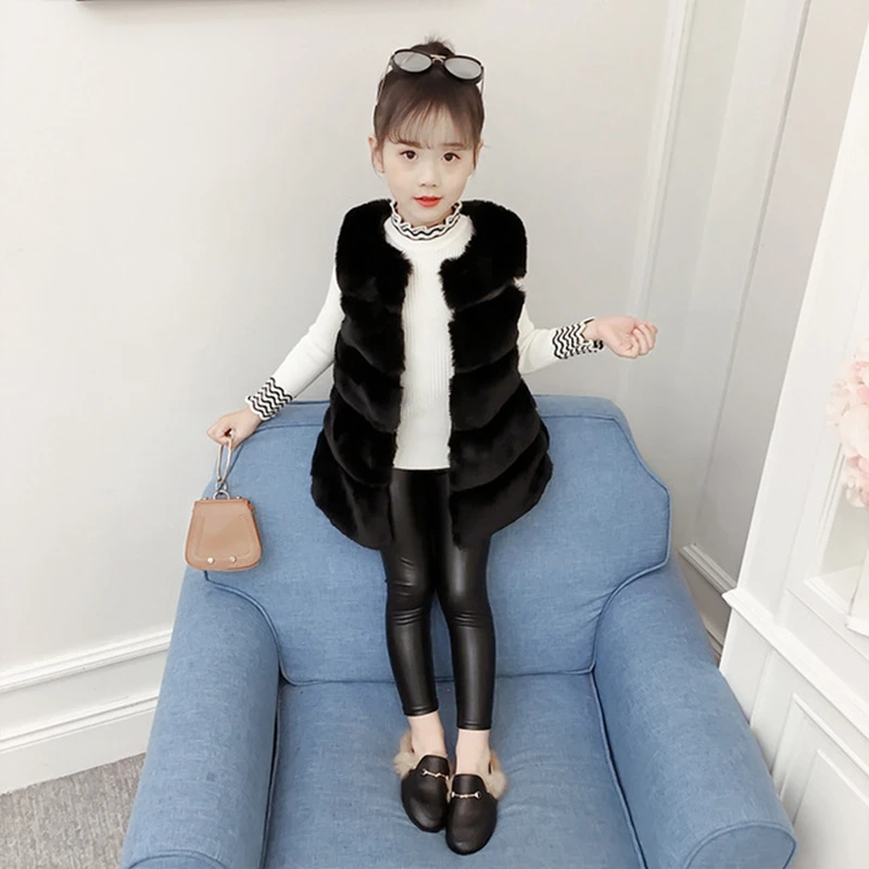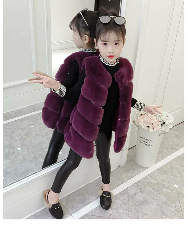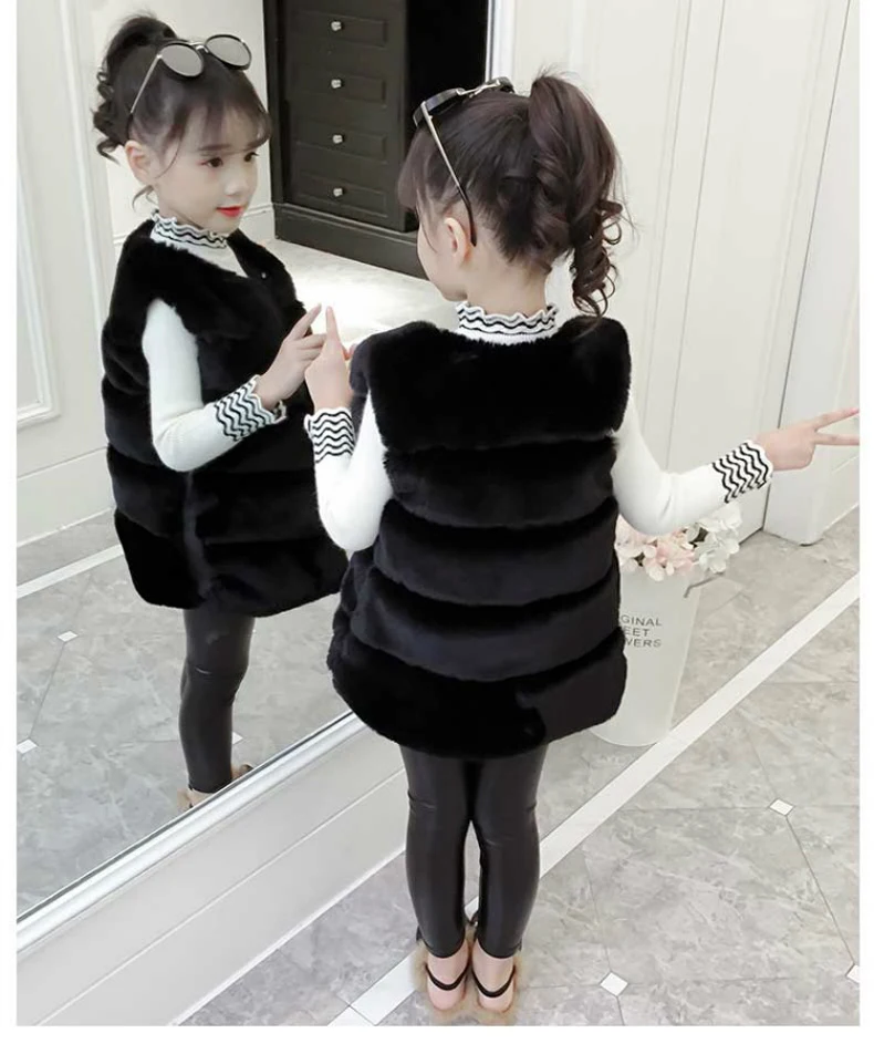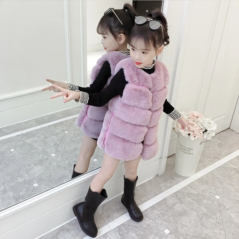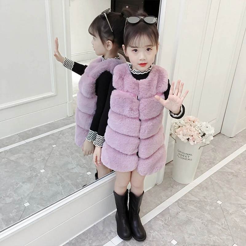 Меховой жилет для девочек, зимняя безрукавка из искусственного меха, куртка без рукавов для девочек, Рождественская одежда, детская верхняя одежда принцессы, TZ426