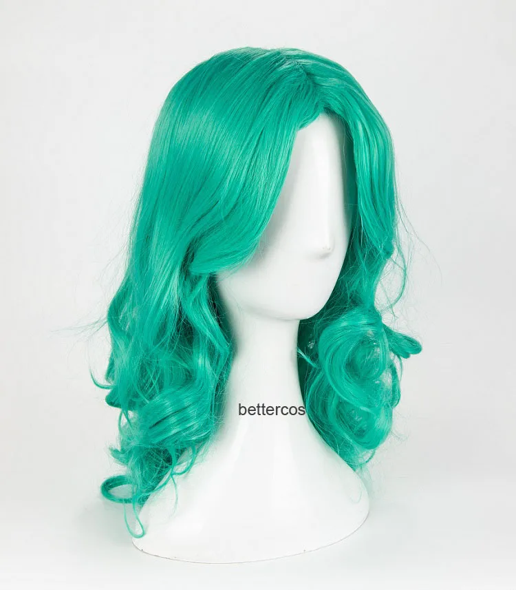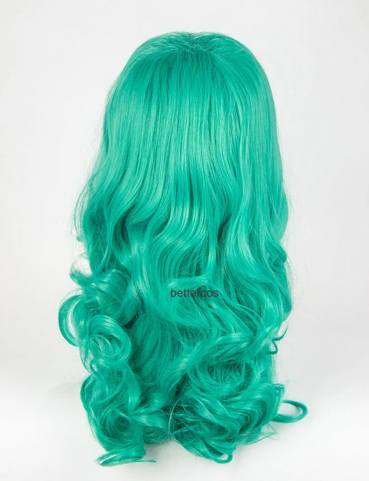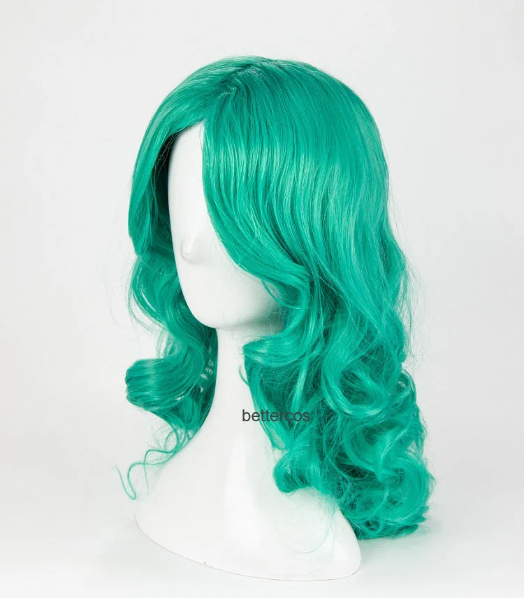 Парик для косплея Сейлор Нептун Kaiou Michiru, Длинные Зеленые кудрявые термостойкие волосы, парик с шапочкой
