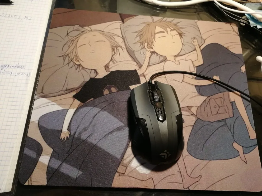 Я так влюблен! Он пришел в идеальном состоянии, без каких-либо царапин или проблем. Идеальное измерение (по сравнению с моим мобильным телефоном), изображение HD и очень классное. Коврик для мыши легкий и мягкий (и пахнет немного пластика, не большая проблема). Jian yi и Xixi такие милые T ^ T, мне это нравится.