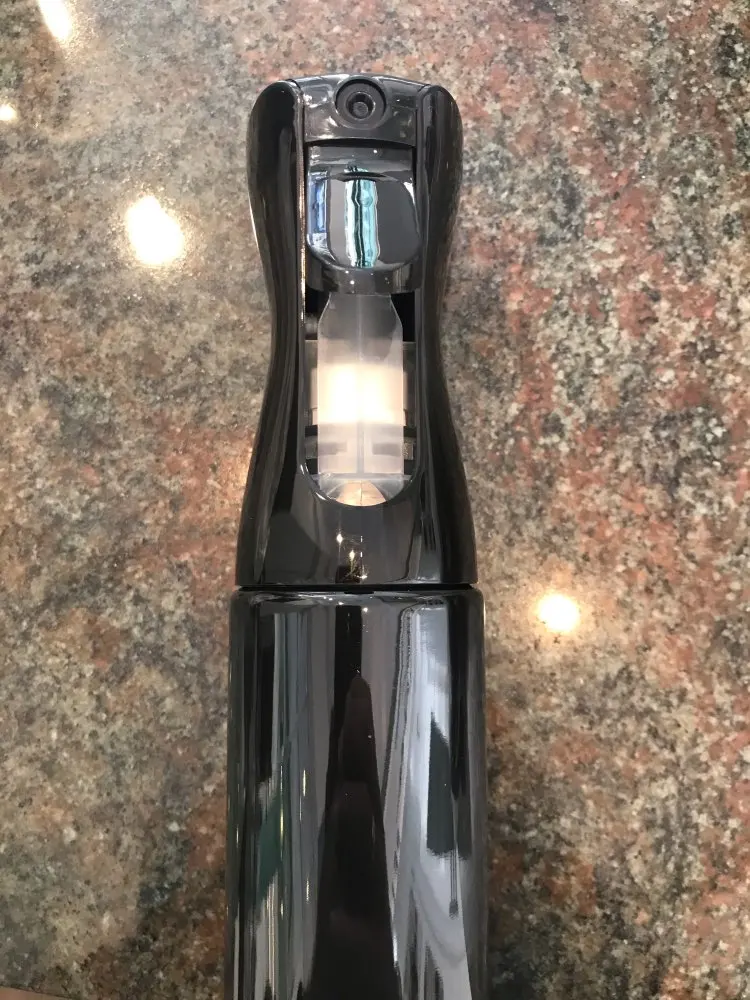 Моя любовь. Он идеально ровно покрывает водой достаточно большую площадь волос. Благодаря поршню, вода может выходить маленькими частями. Так же его удобно быть (горло не узкое). Весь из пластика, поэтому легкий. А ещё есть предохранитель и можно брать его в поездки.